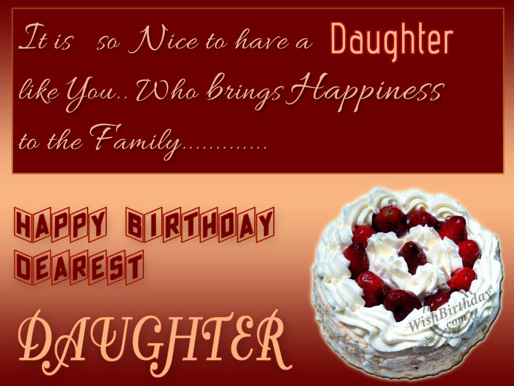 Description: A birthday card with a cake and a happy daughter on it's side.
