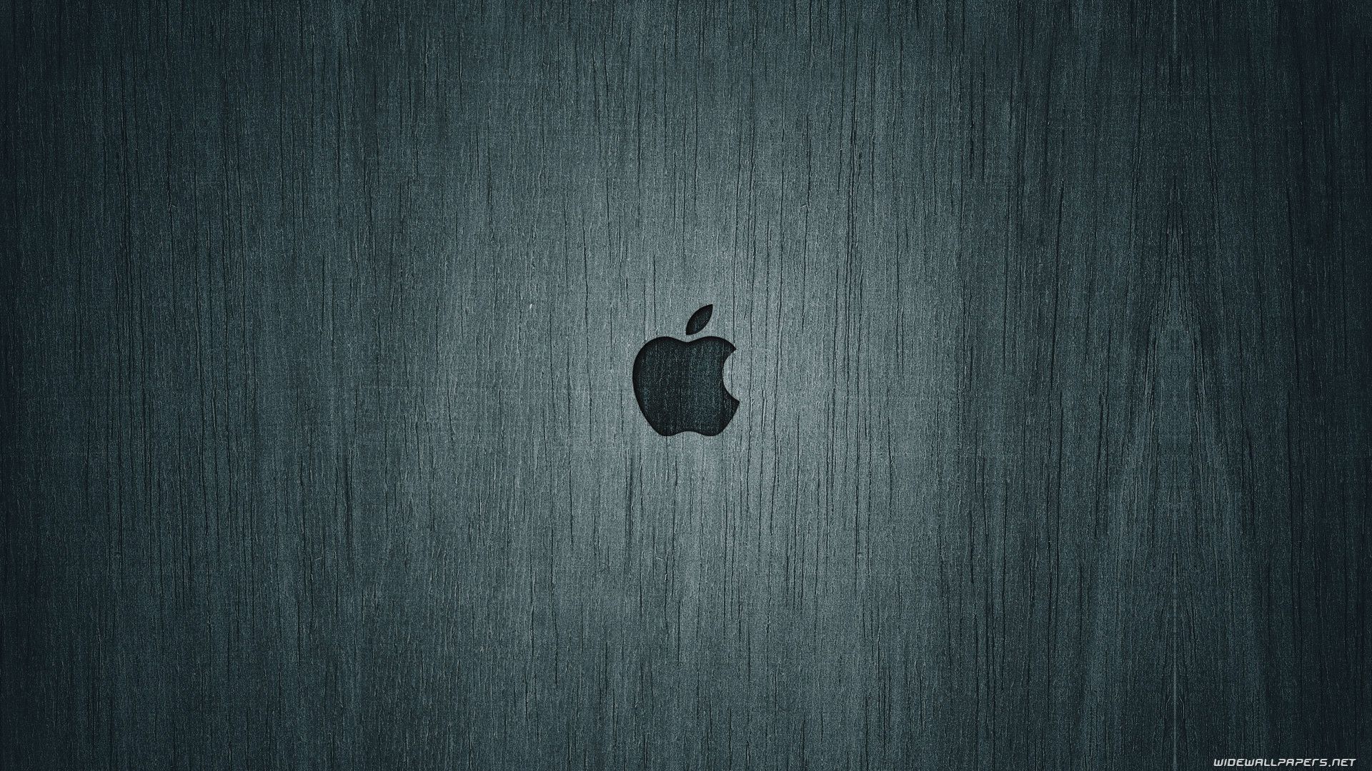 Description: A black apple logo on a dark background with a textured surface that looks like wood grains or grains.