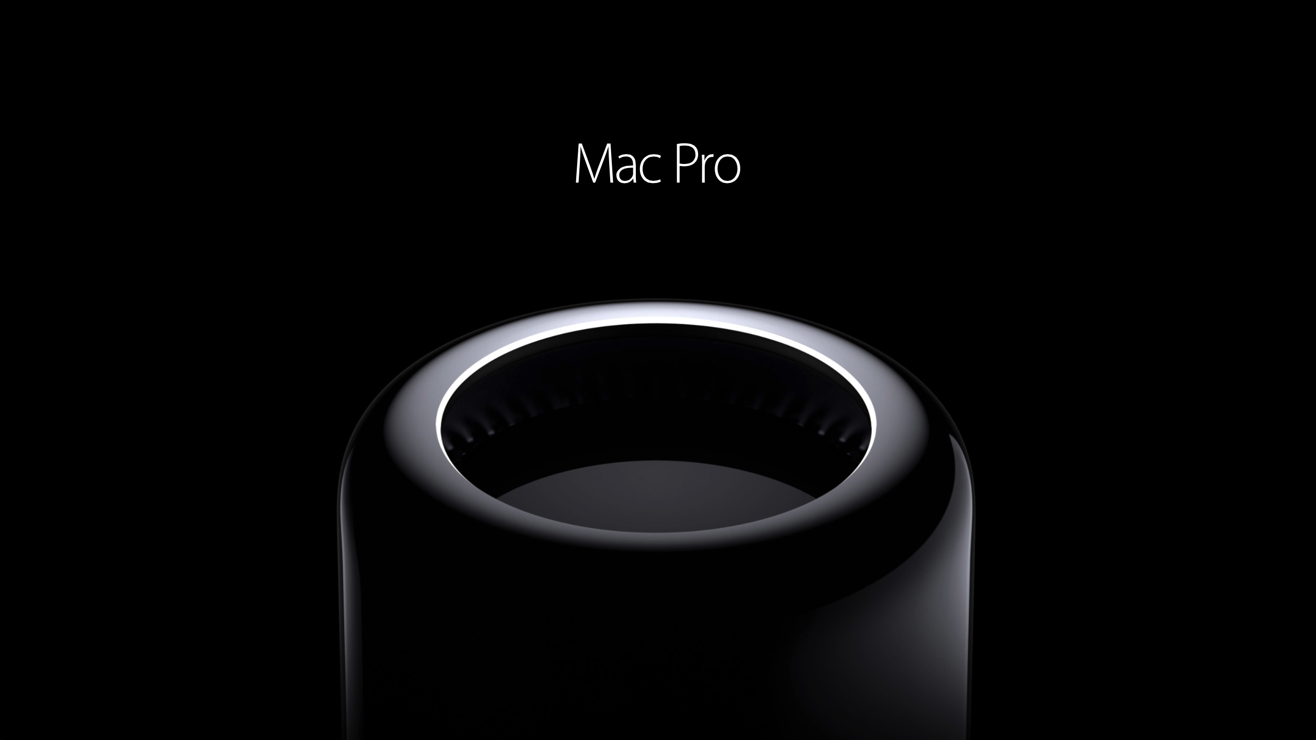 Description: A black apple product with the mac pro logo on it's side and the mac pro logo on the back.
