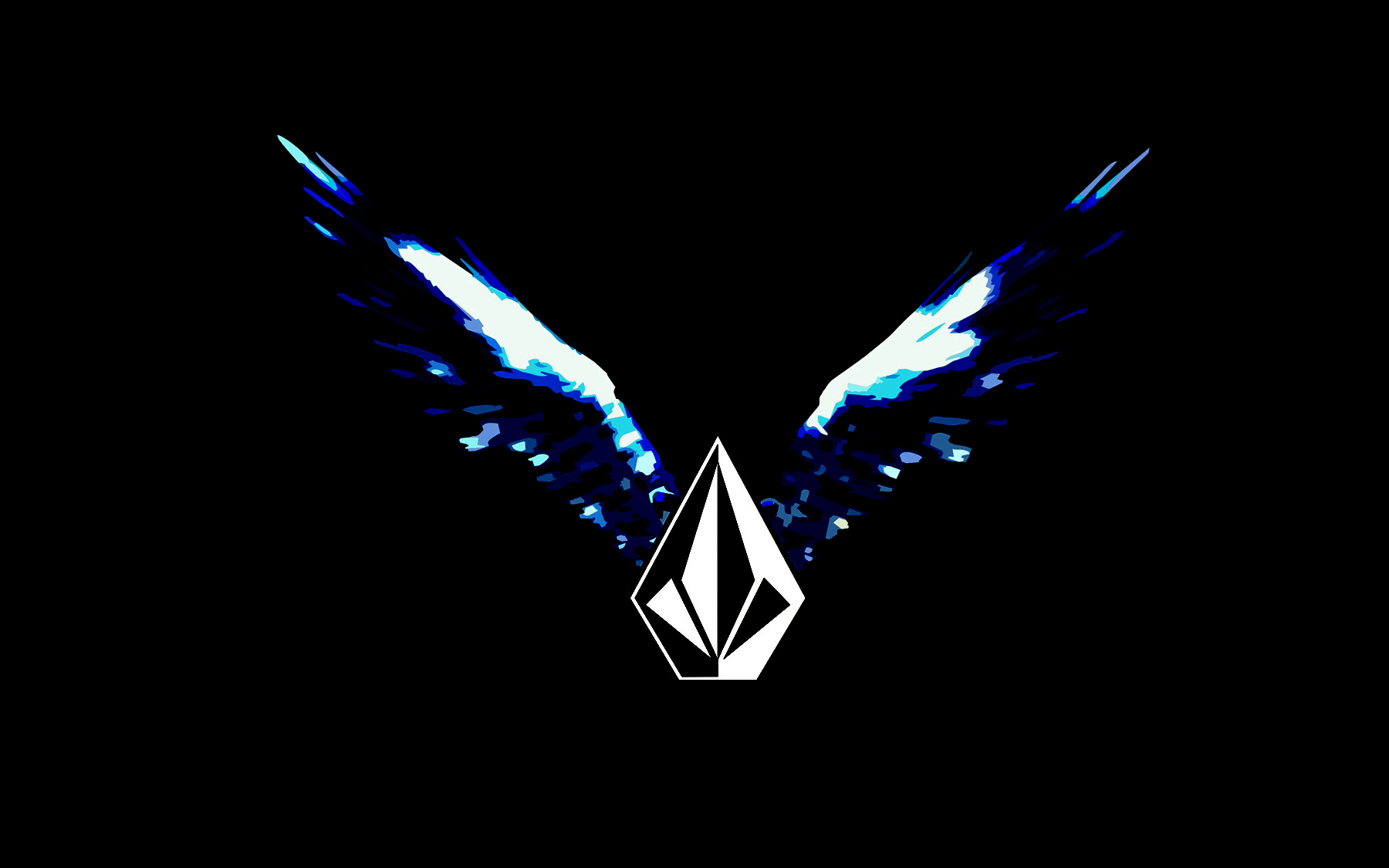 Description: A black background with a blue and white logo on it and a pair of wings on top of it.