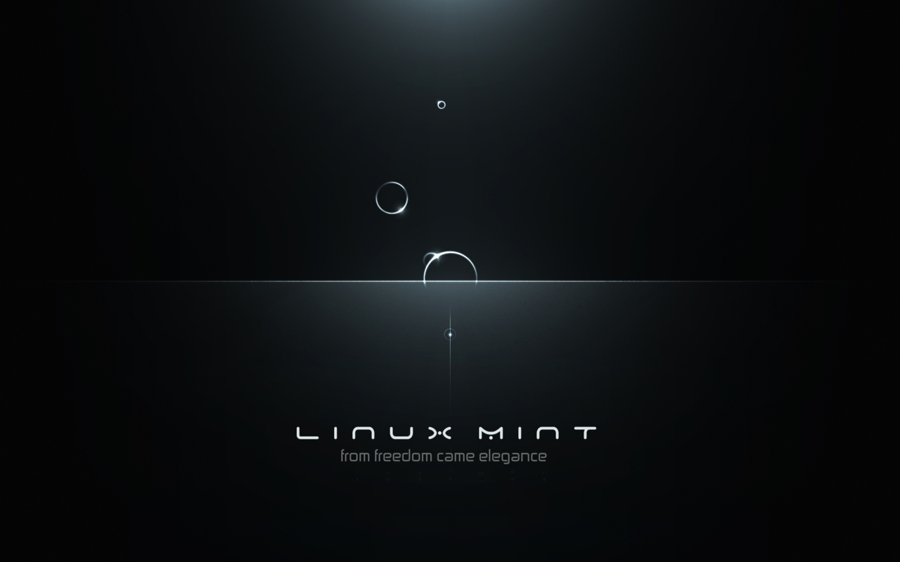 Description: A black background with a light shining on it and a logo for linux mint on the bottom of the image.