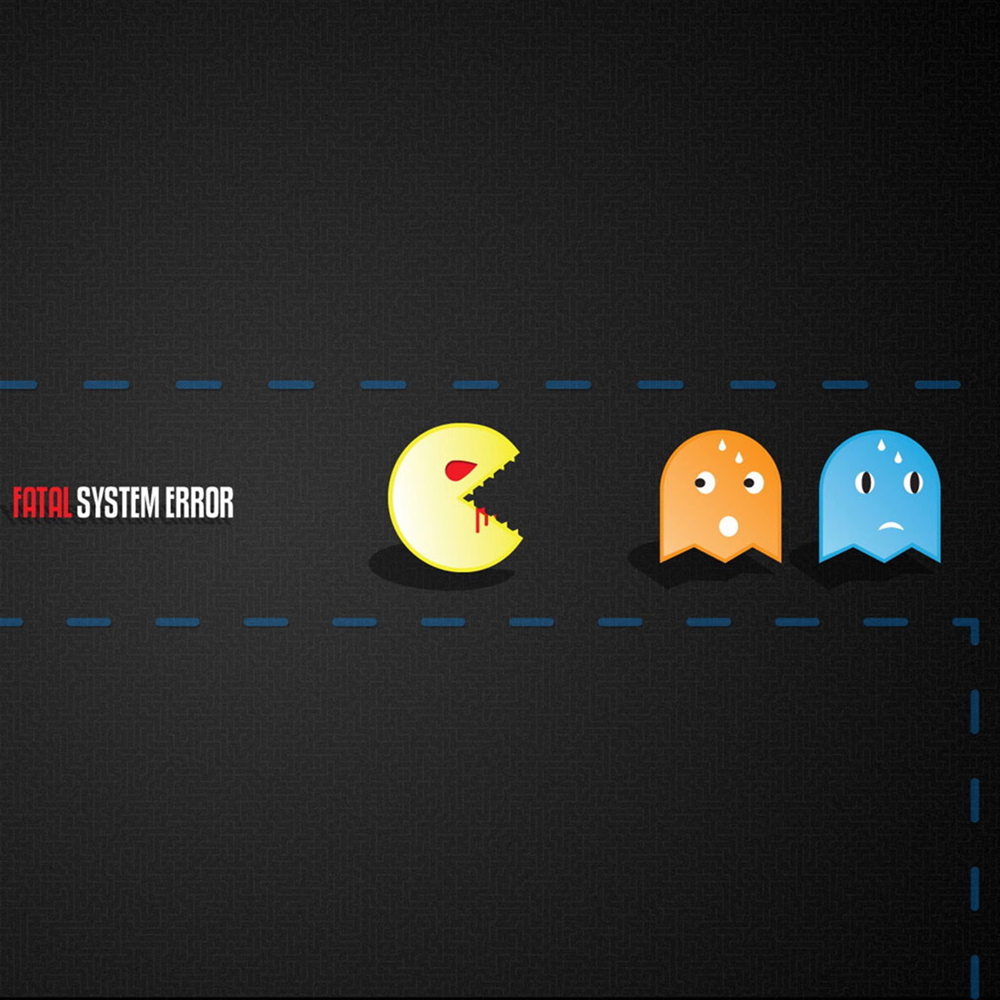 Description: A black background with three different colored pacman faces on it and a line of text that says.