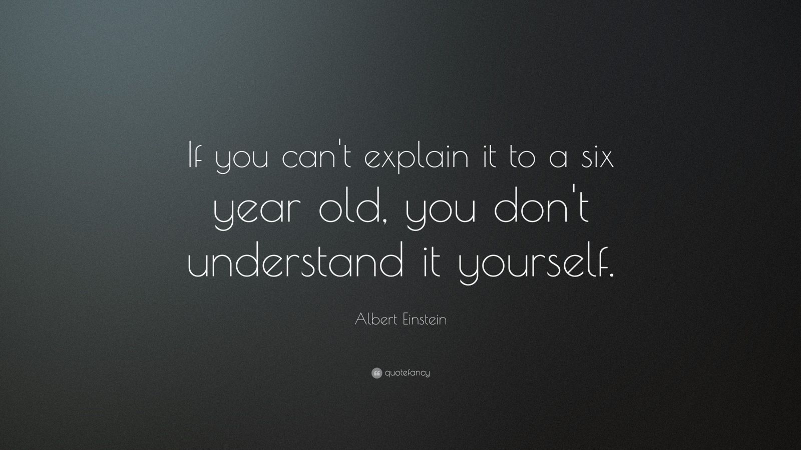 Description: A quote on a black background that says if you can't explain it to a six year old.