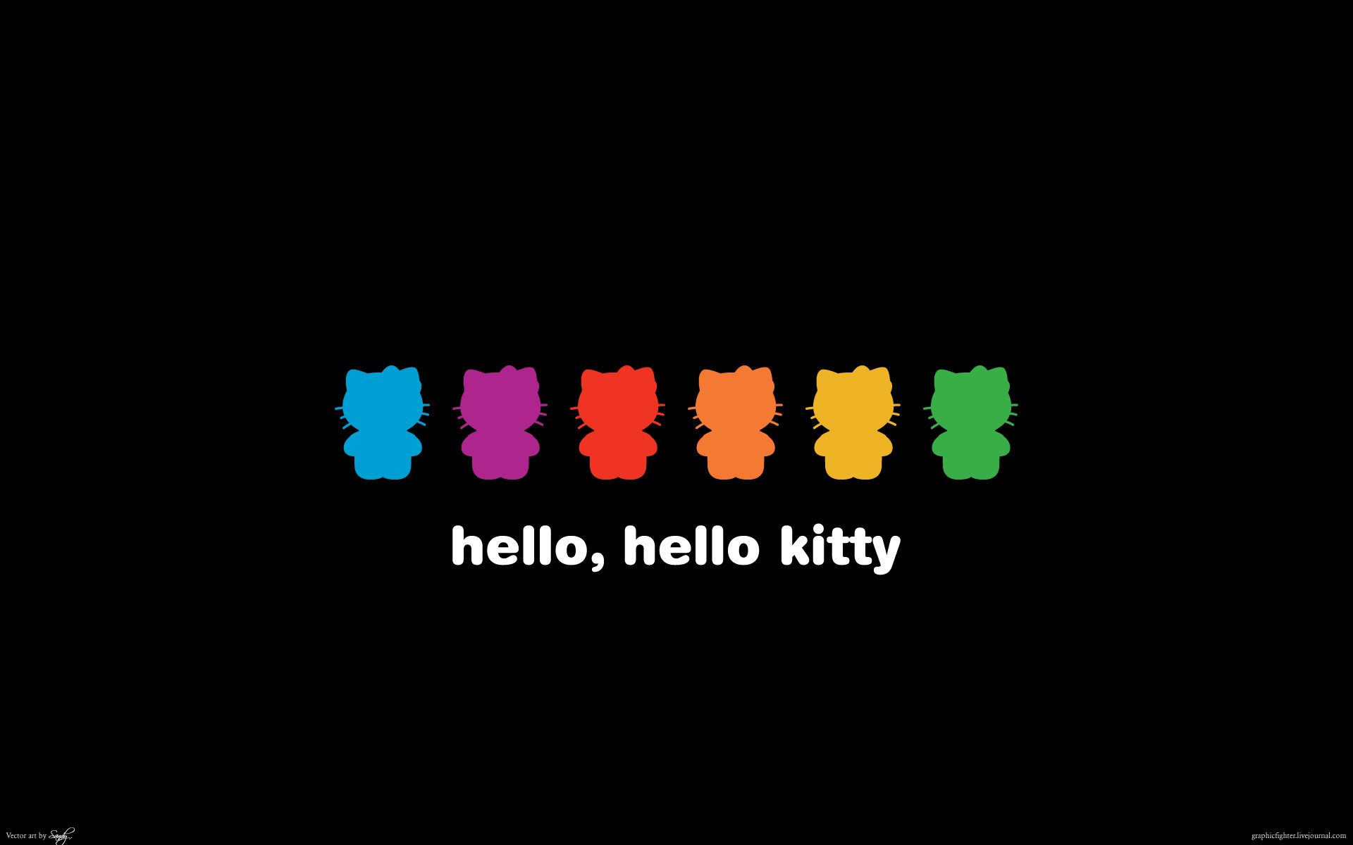 Description: A black background with a rainbow hello kitty logo on it and the words hello kitty written in white in the middle.