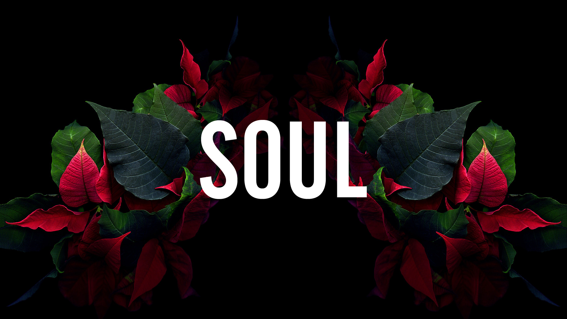 Description: A black background with a red flower and the word soul in the middle of it with a black background.