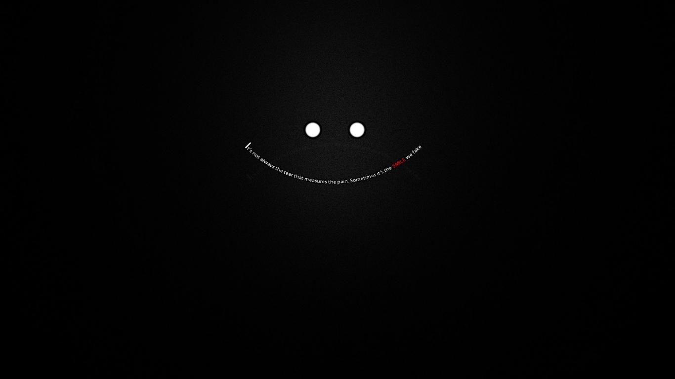 Description: A black background with a smiley face drawn on it's face and two eyes drawn on the face.