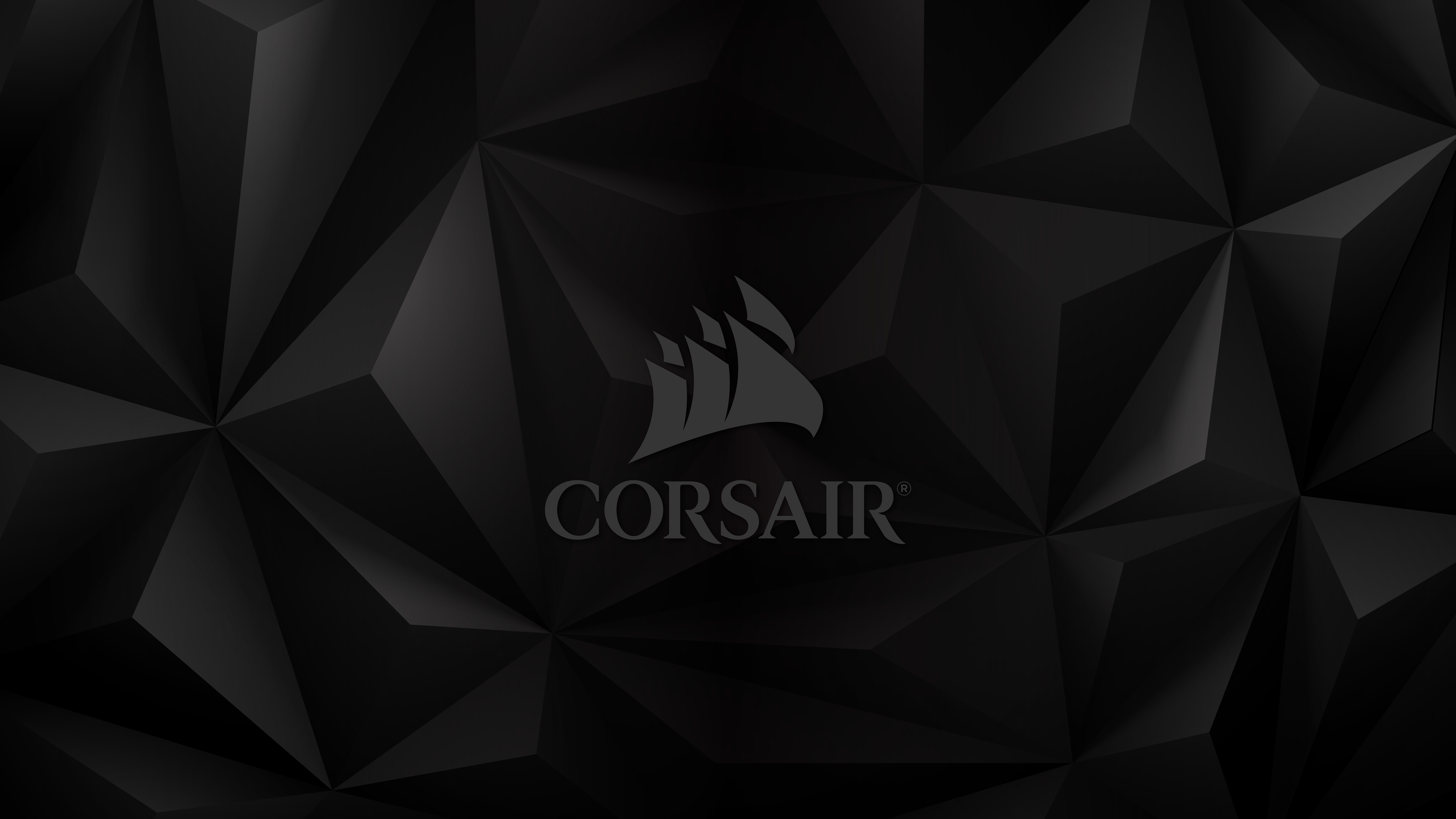Description: A black background with a white corsair logo on it's side and a black triangle pattern.