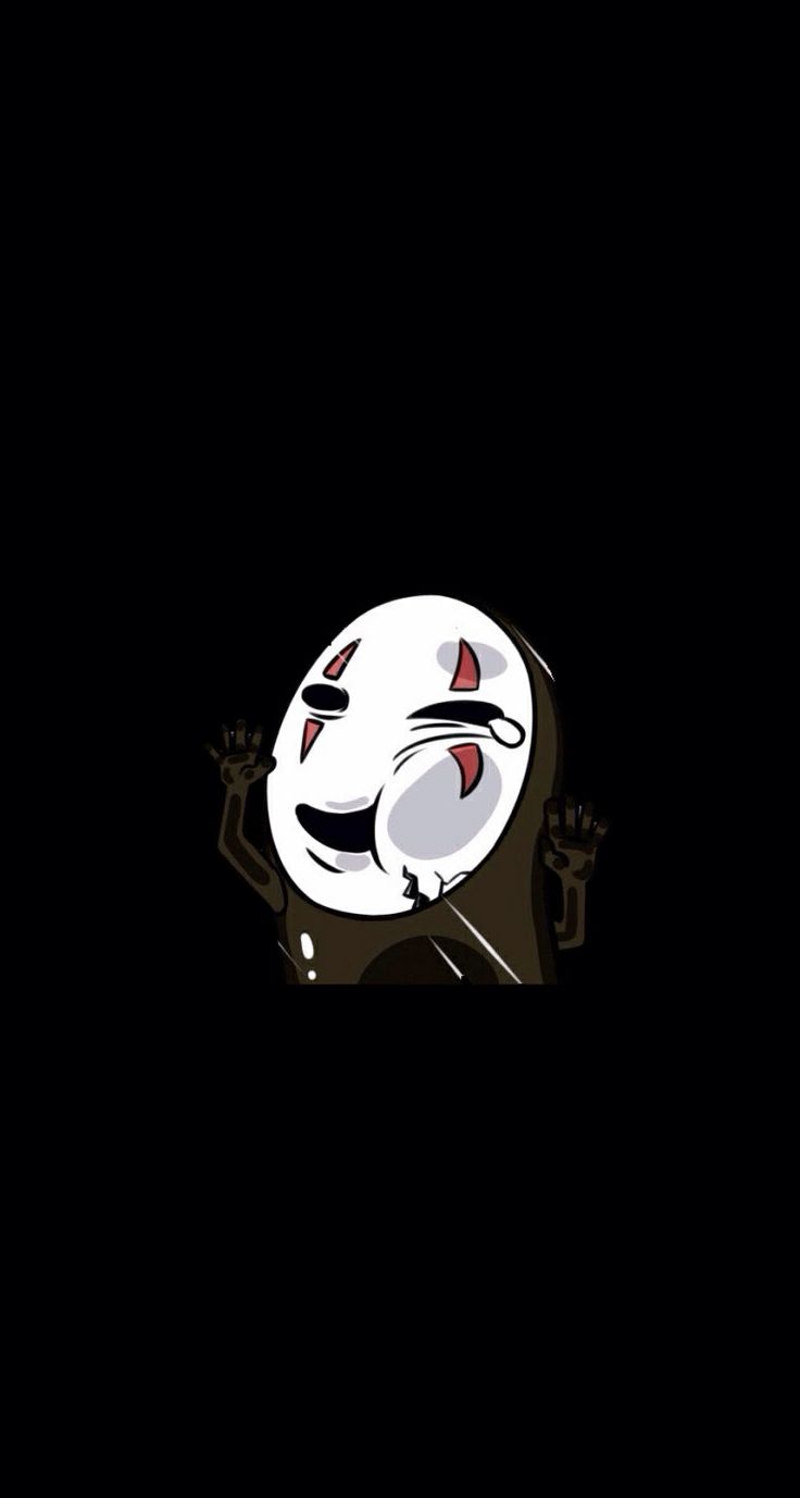 Description: A black background with a white mask and a red nose on it's face and a black background with a white mask and a red nose on it's face.
