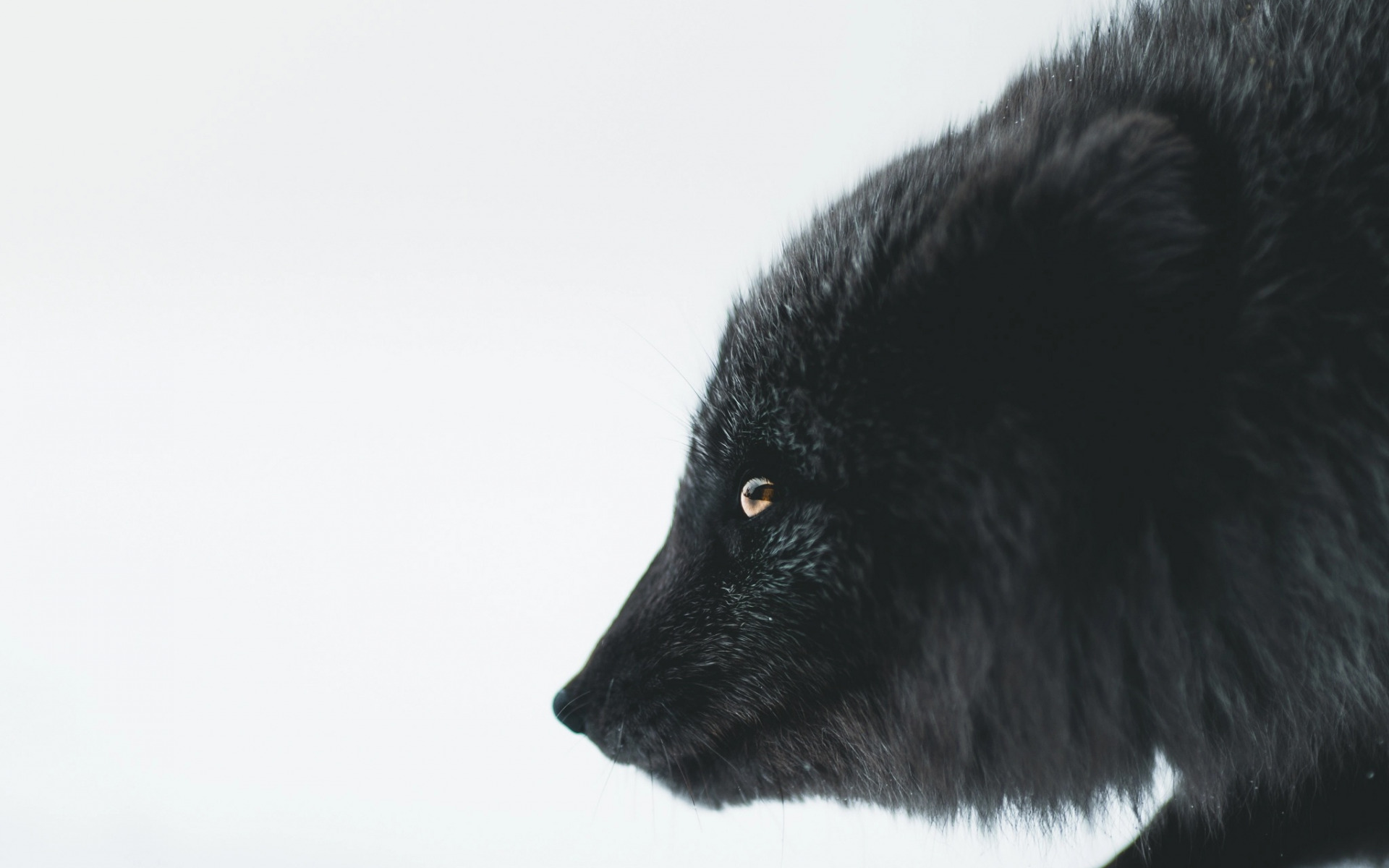 Description: A black bear with a white background and a blurry background is shown in this image of a black bear.