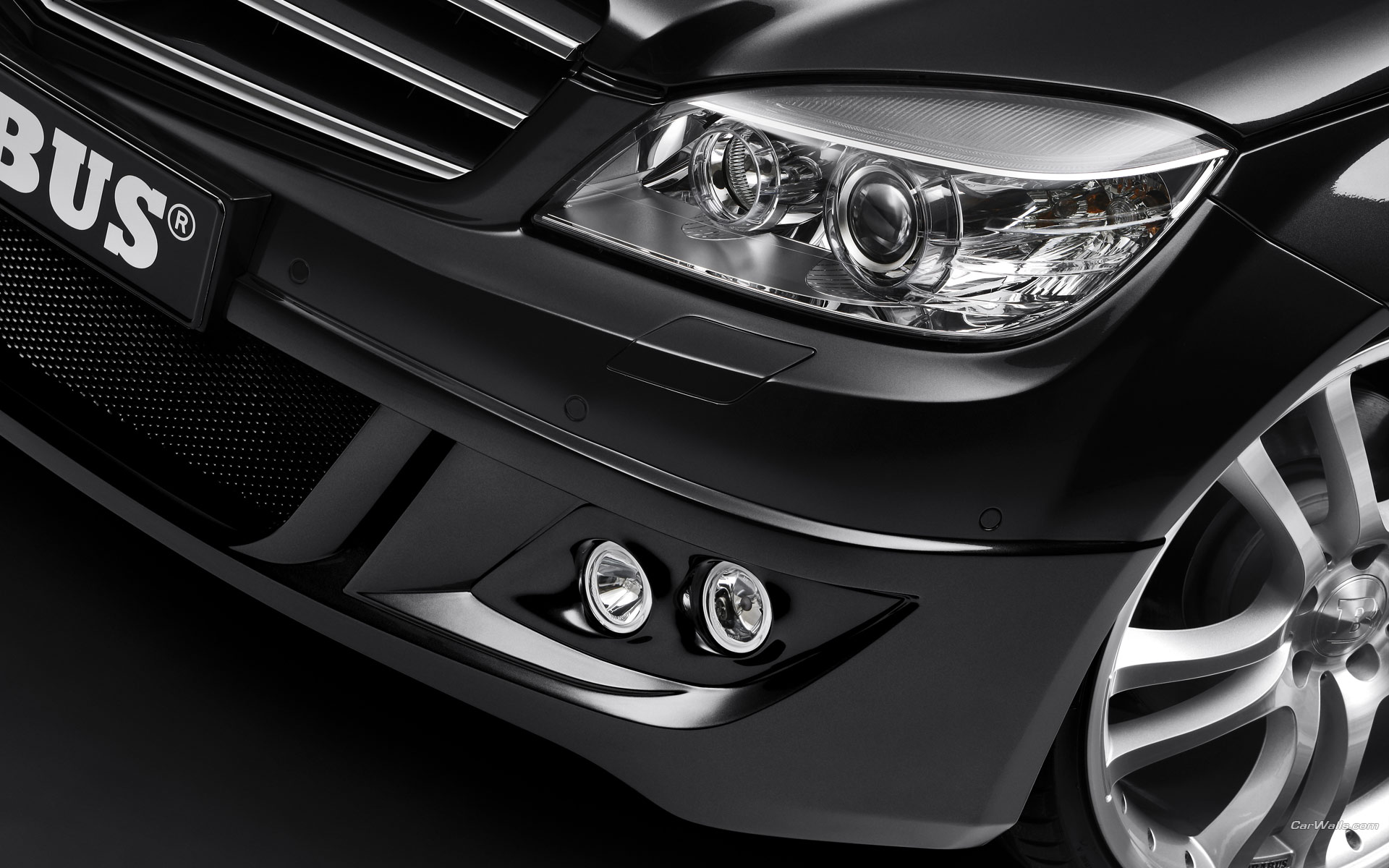 Description: A close up of a black car with chrome rims and a bus logo on it's front bumper.