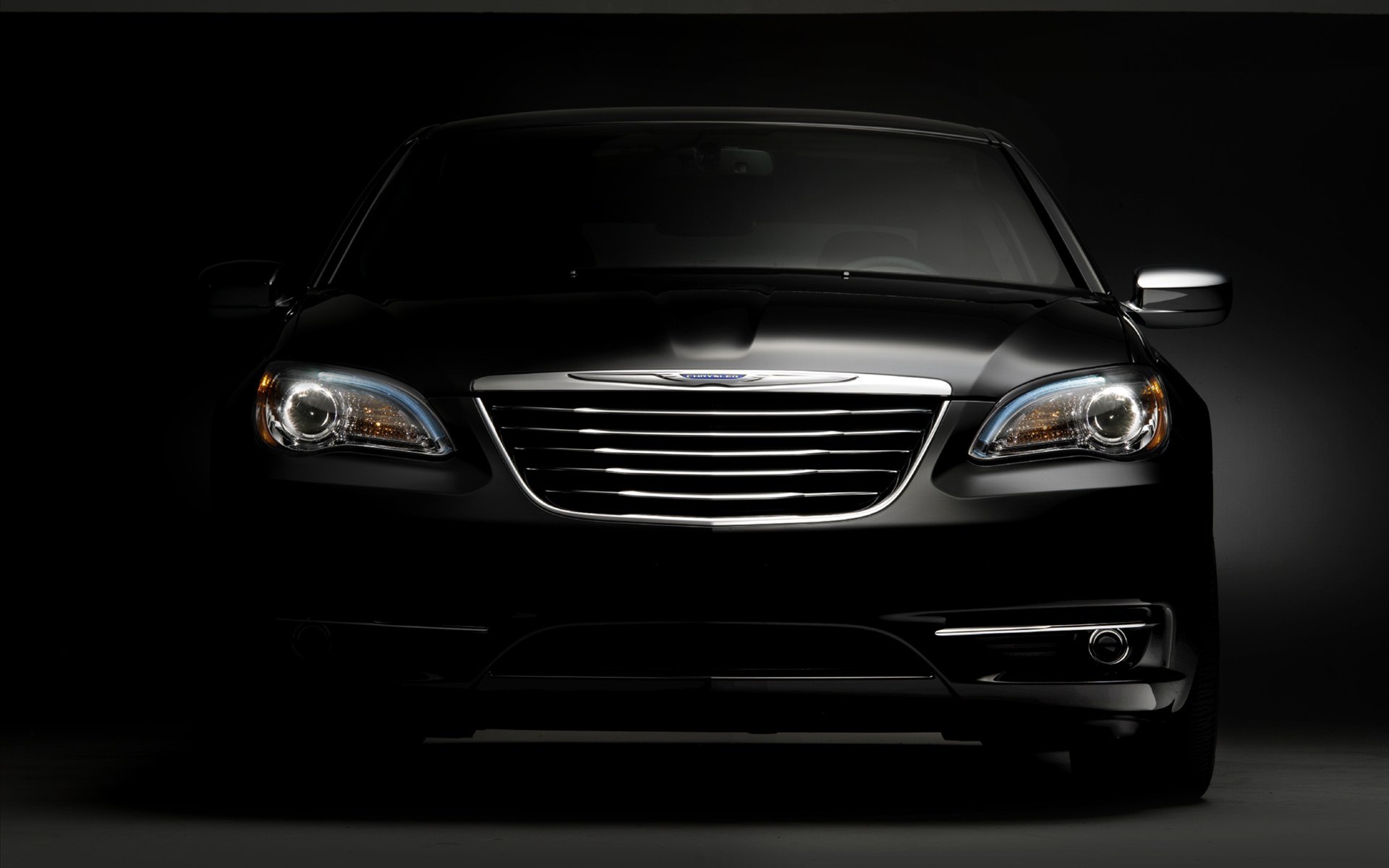 Description: A black car is shown in the dark with its headlights on and the hood up and the hood down.