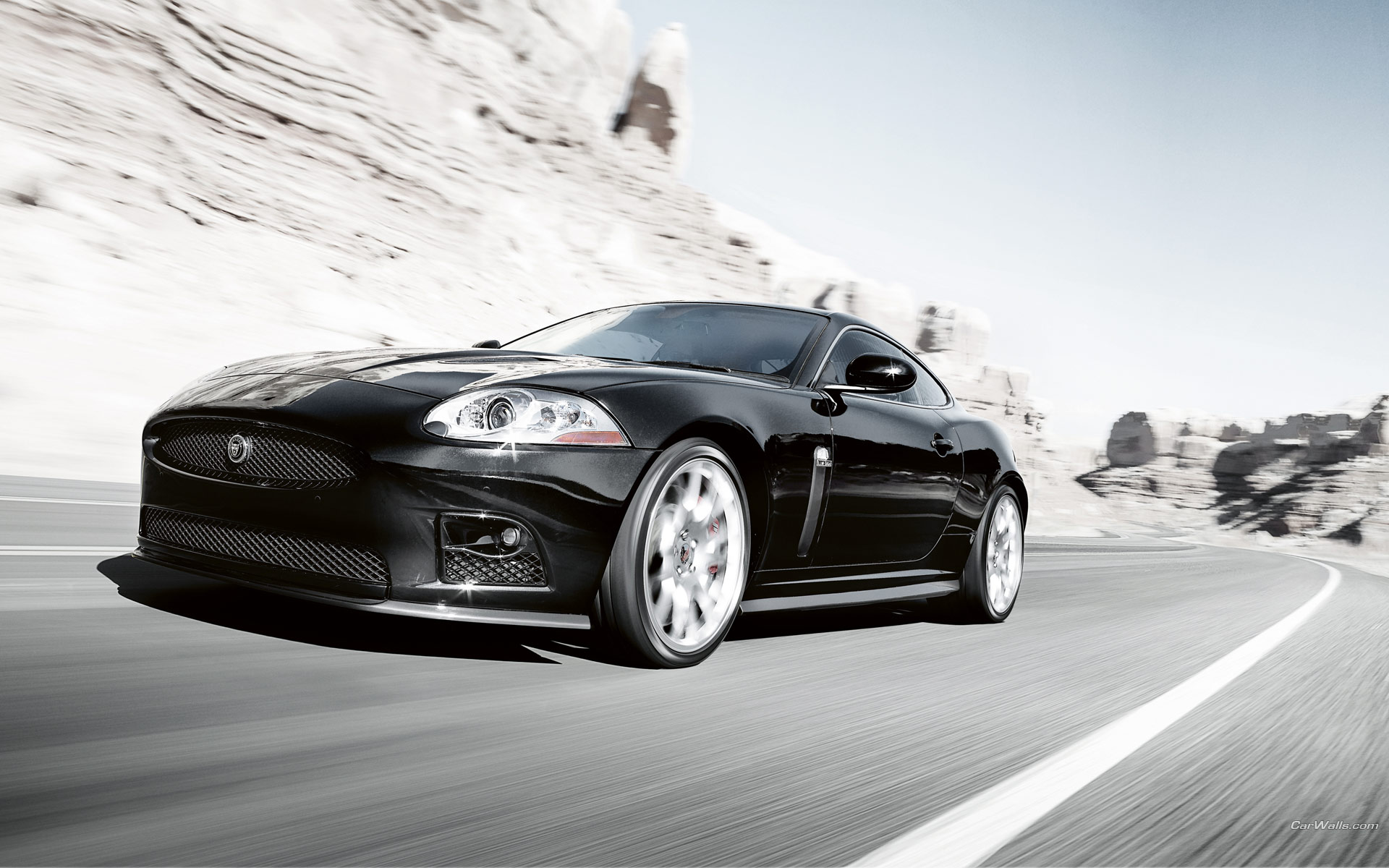 Description: A black car driving down a road next to a mountain side covered in snow and ice covered rocks and snow.