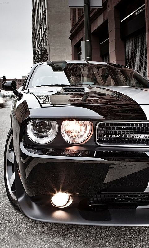 Description: A black car parked on the side of a road next to a tall building with a clock on it.
