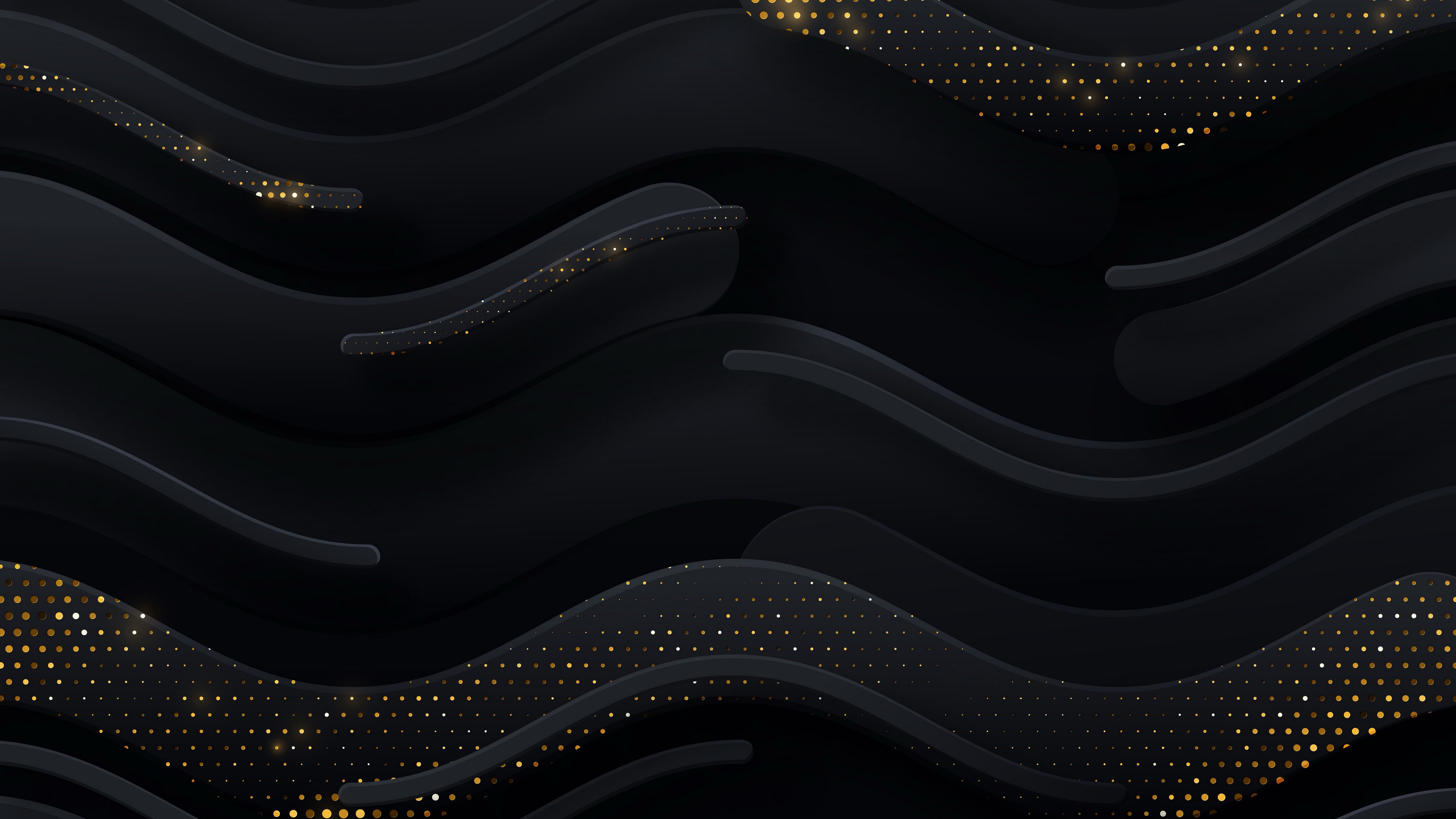 Description: A black and gold abstract background with wavy lines and dots in the middle of the image.