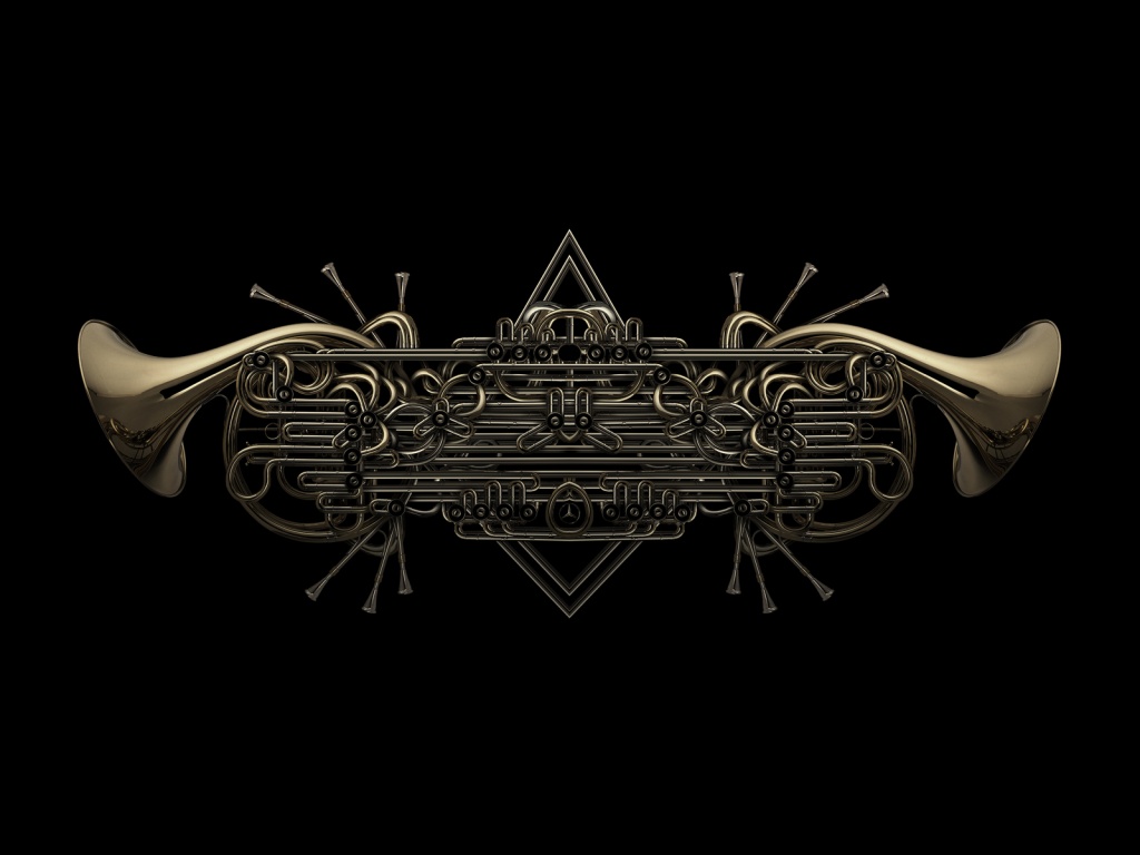 Description: A black background with a gold design on it's side and a black background with a gold design on it's side.