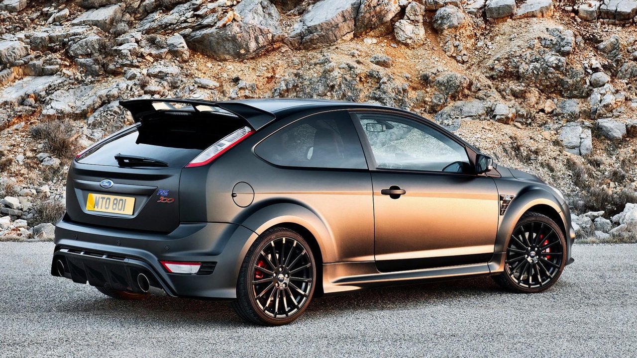 Description: A black and gold car parked in front of a rocky mountain side area with a black roof and red rim.