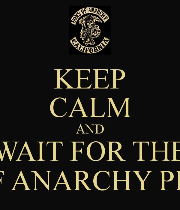 Description: A black and gold poster with a skull on it's side and words that read keep calm and wait for the f anarchyppe.
