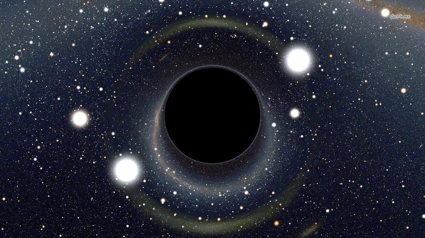 Description: A black hole in the center of a galaxy with stars around it and a black hole in the center.