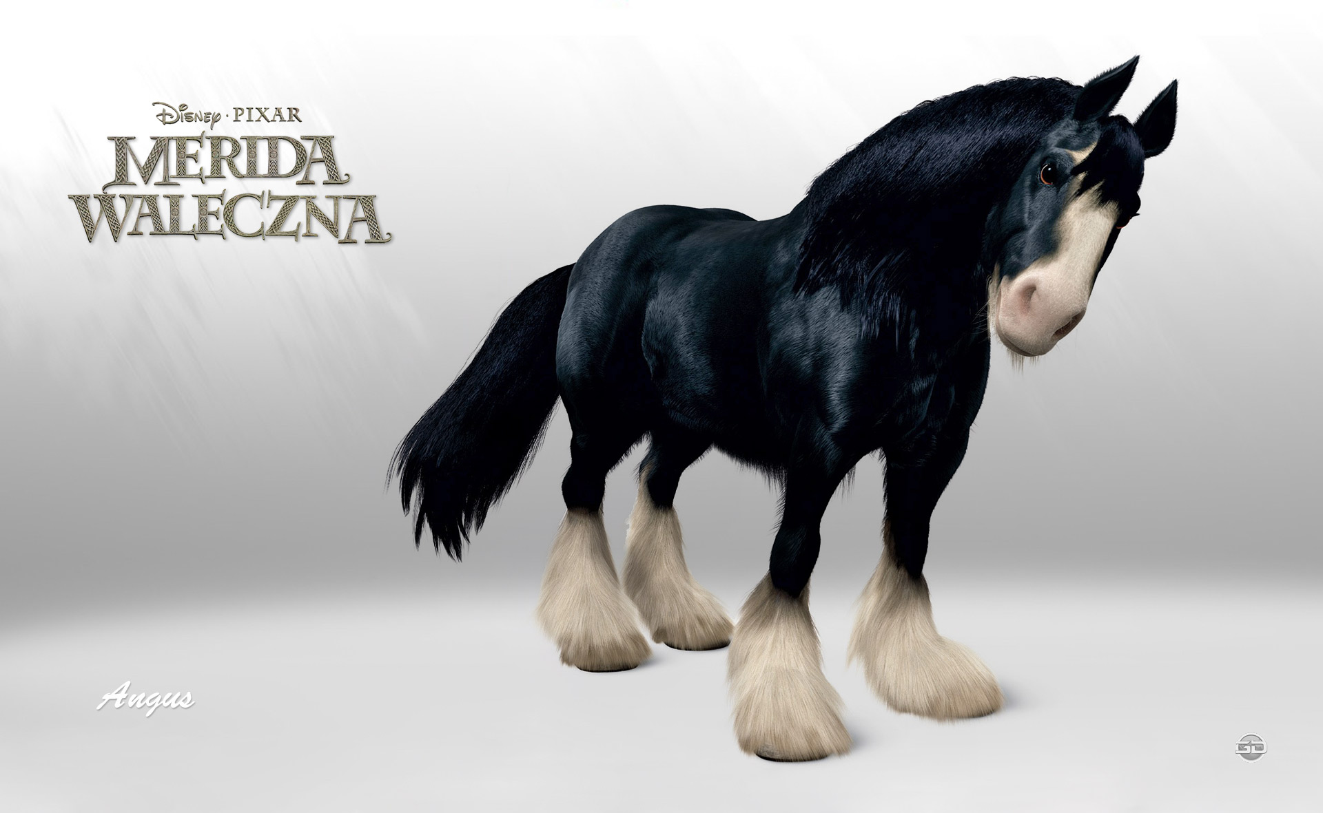 Description: A black horse with long legs and a white mane standing in front of a white background with a title underneath it.