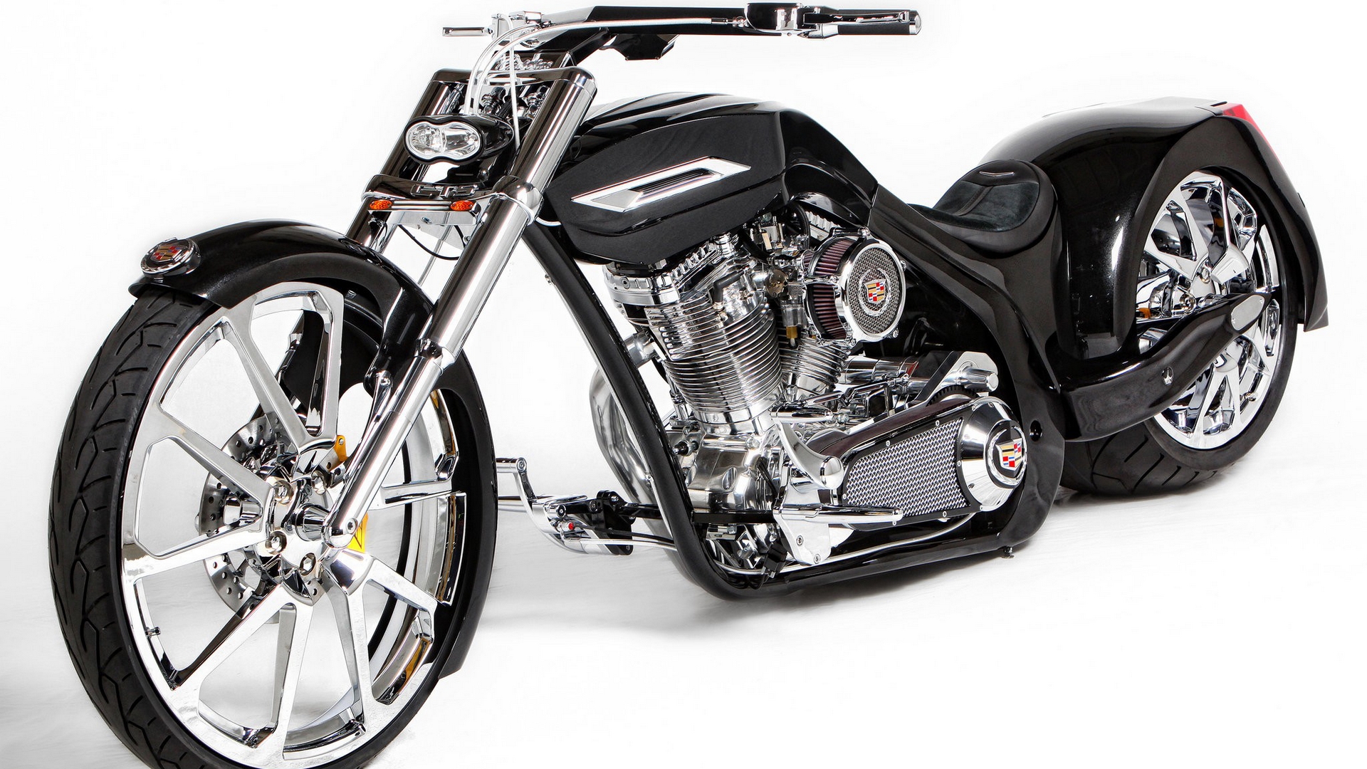 Description: A black motorcycle with chrome wheels and a chrome rims on a white background with a white background and a black background.