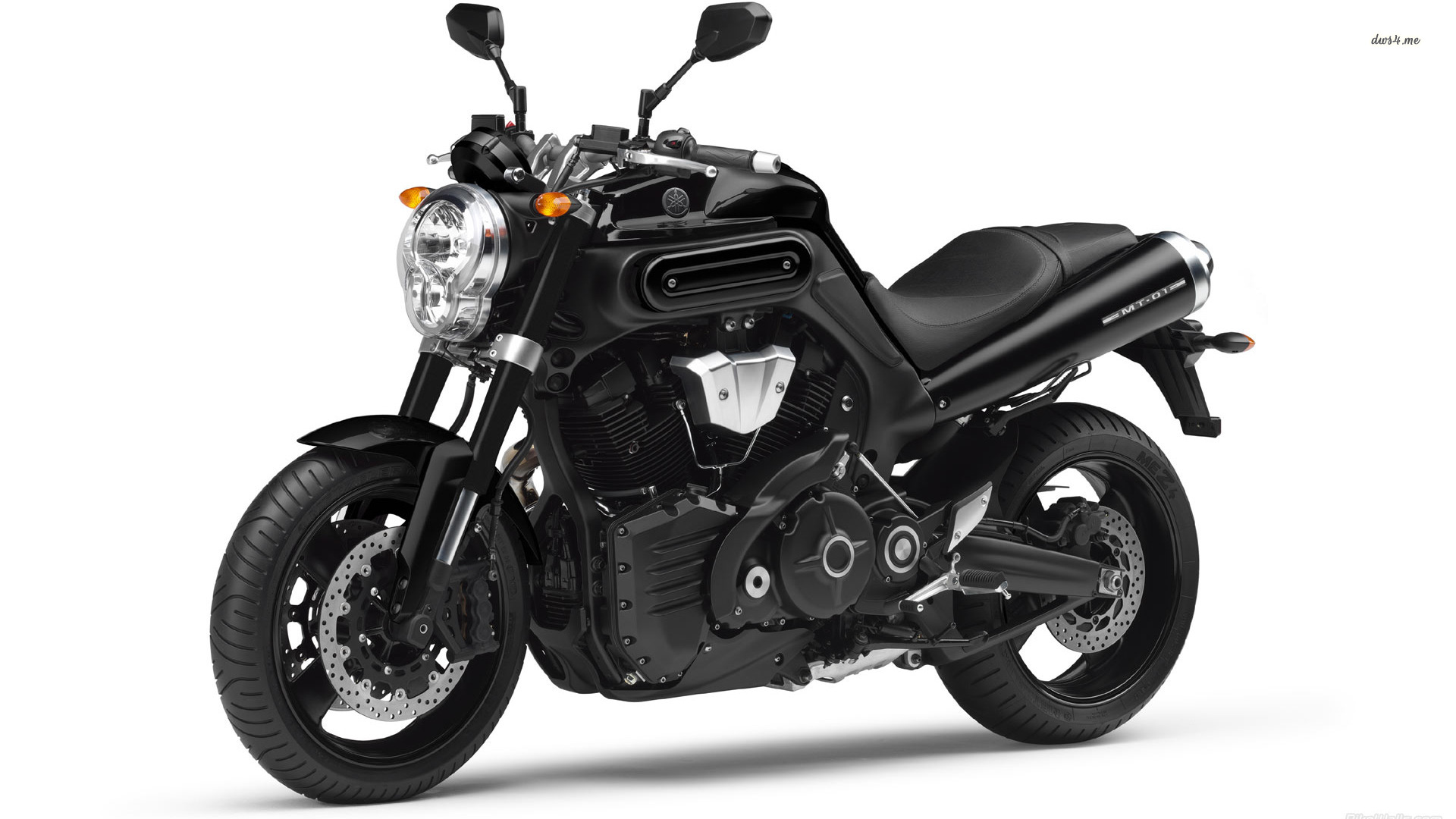 Description: A black motorcycle is parked on a white surface with a white background and a black seat and back end.