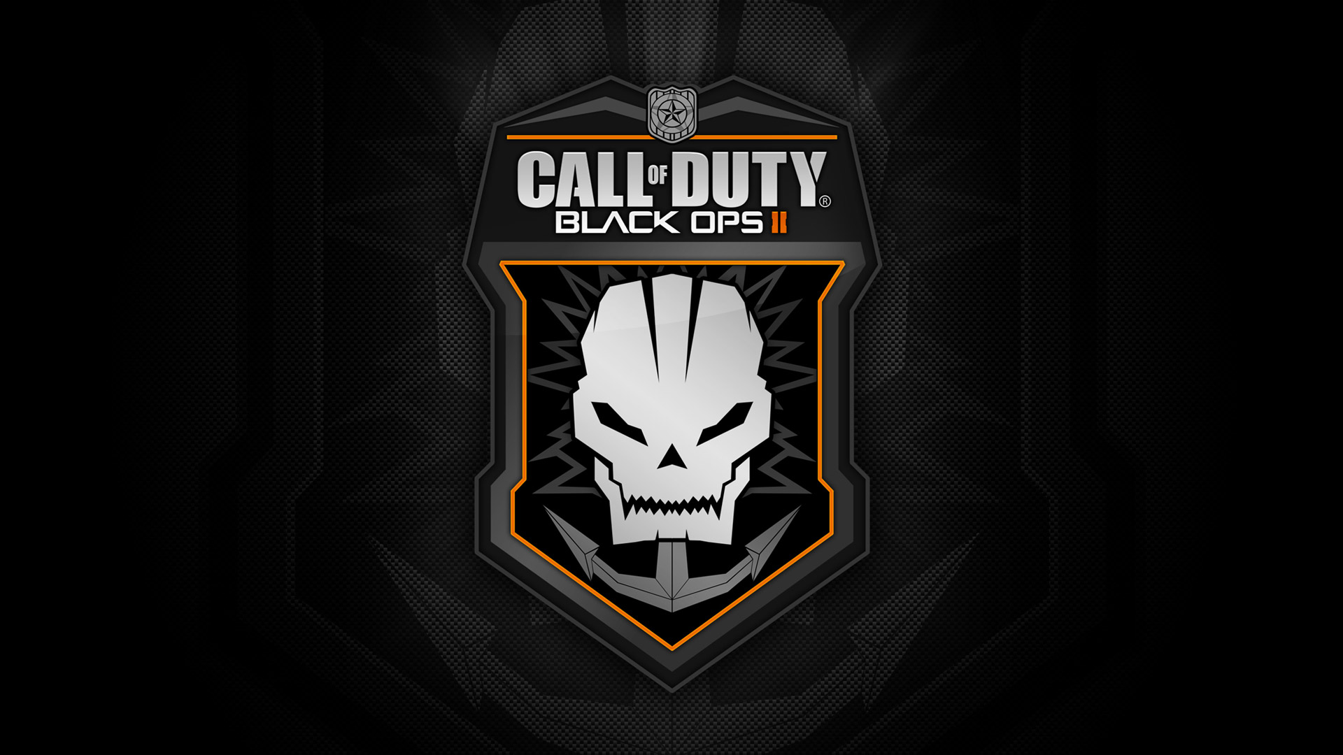 Description: A black and orange logo with a skull on it's side.