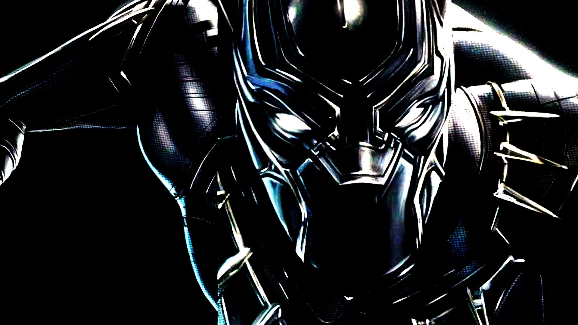 Description: A black panther is standing in the dark with his hands on his hips and his eyes closed.