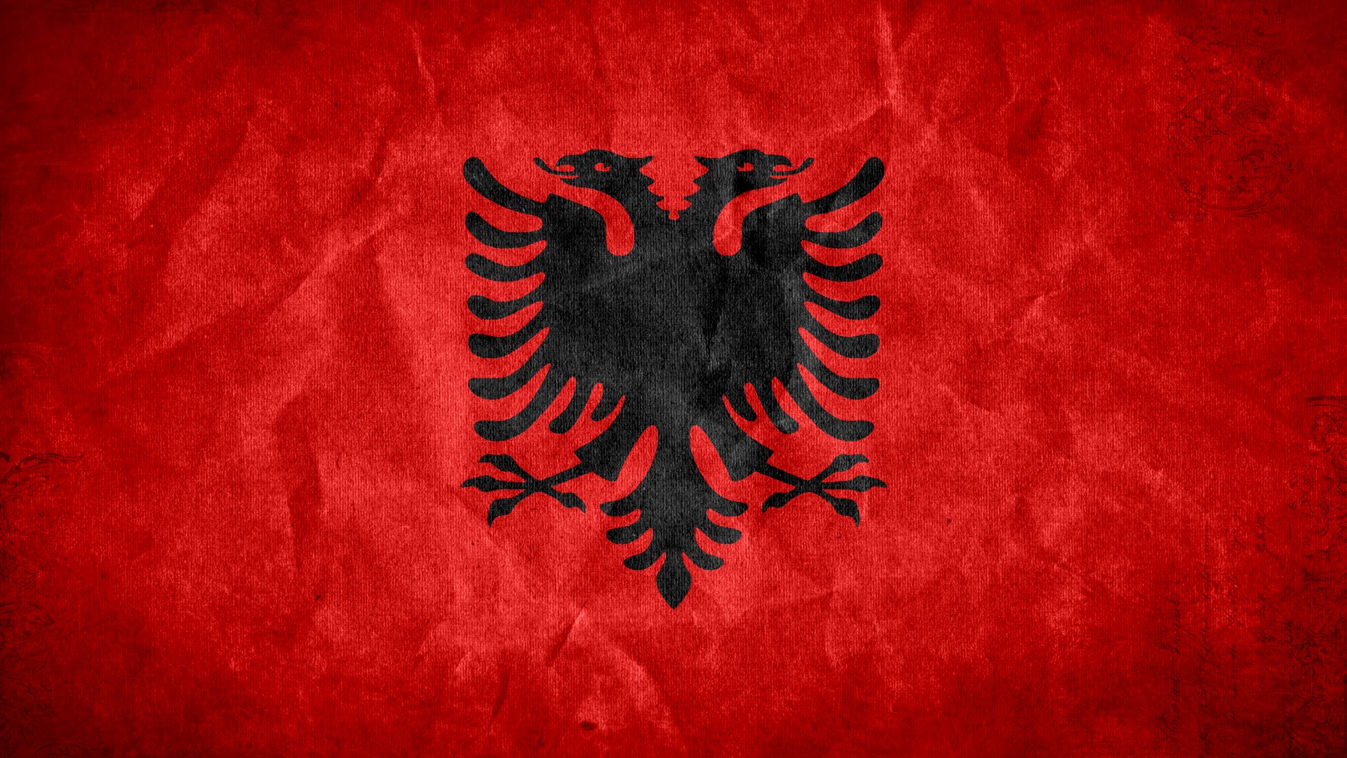 Description: A black and red bird on a red background with a black border on the left side of the image.