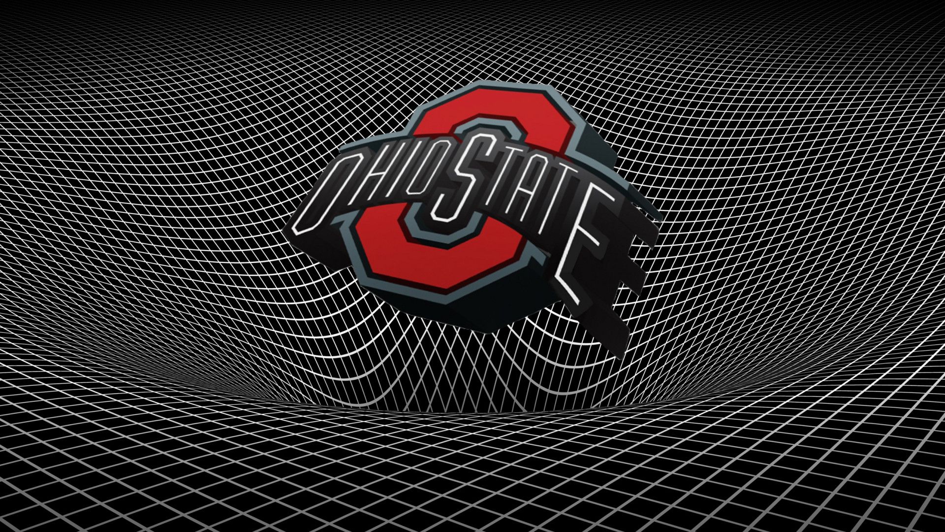 Description: A black and red logo with the word ohio on it in a black background with a grid pattern and a red and white logo.