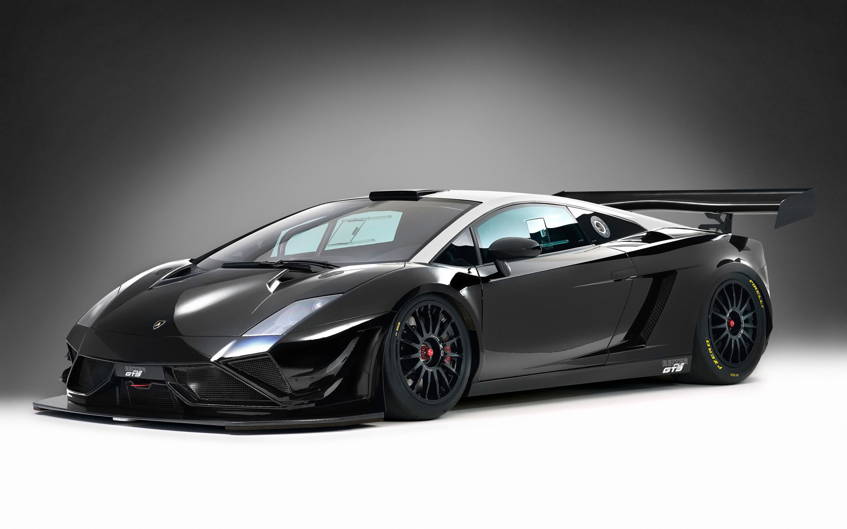 Description: A black sports car with a long hood and a flat tire on a gray background with a black background.
