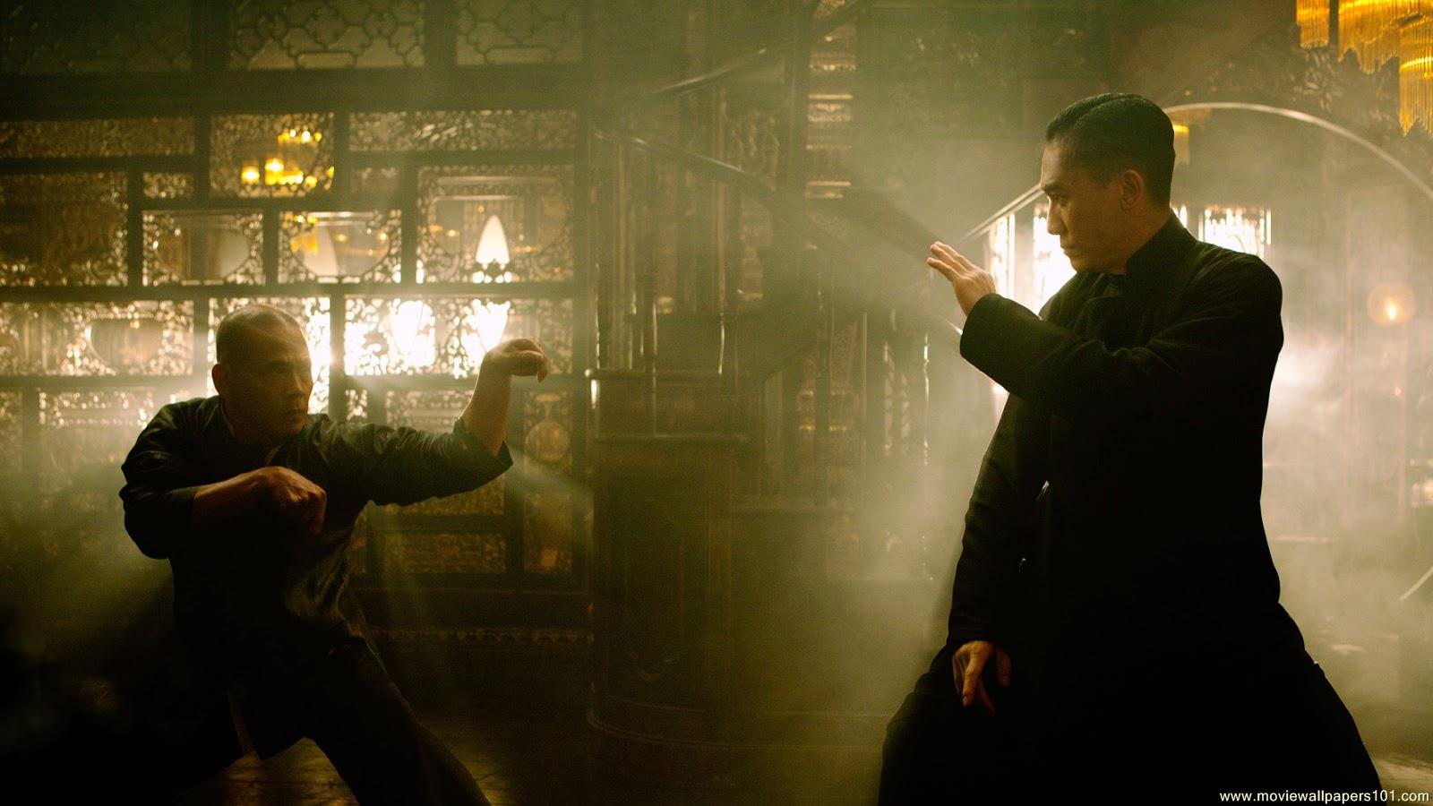 Description: A man in a black suit and a man in a black suit in a dark room with a light.