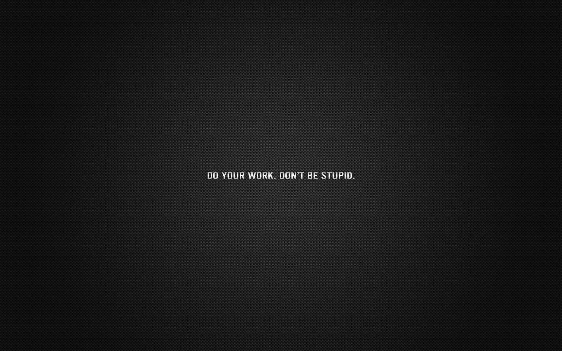 Description: A black wall with a white text that says do your work don't be stupid on it.