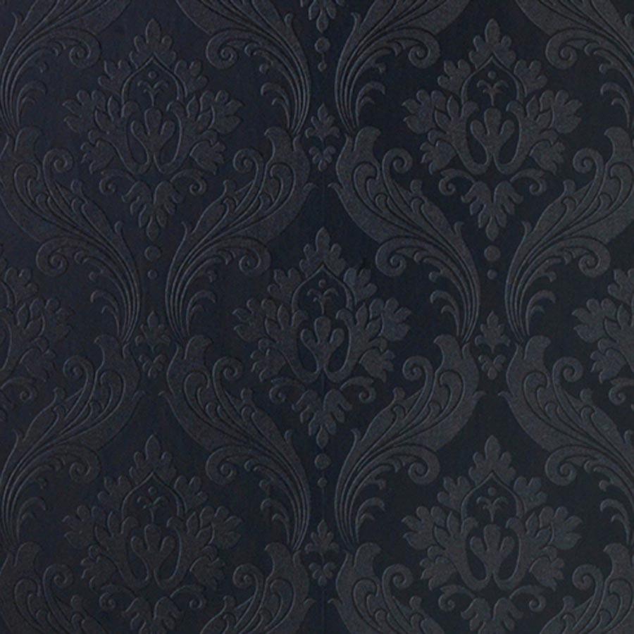 Description: A black wallpaper with a pattern of flowers and leaves on it's side and a clock on the wall.