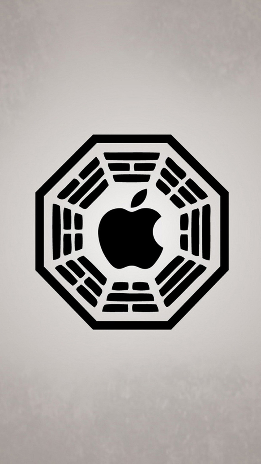 Description: A black and white photo of an apple logo on a laptop computer screen with a circular design on the side.