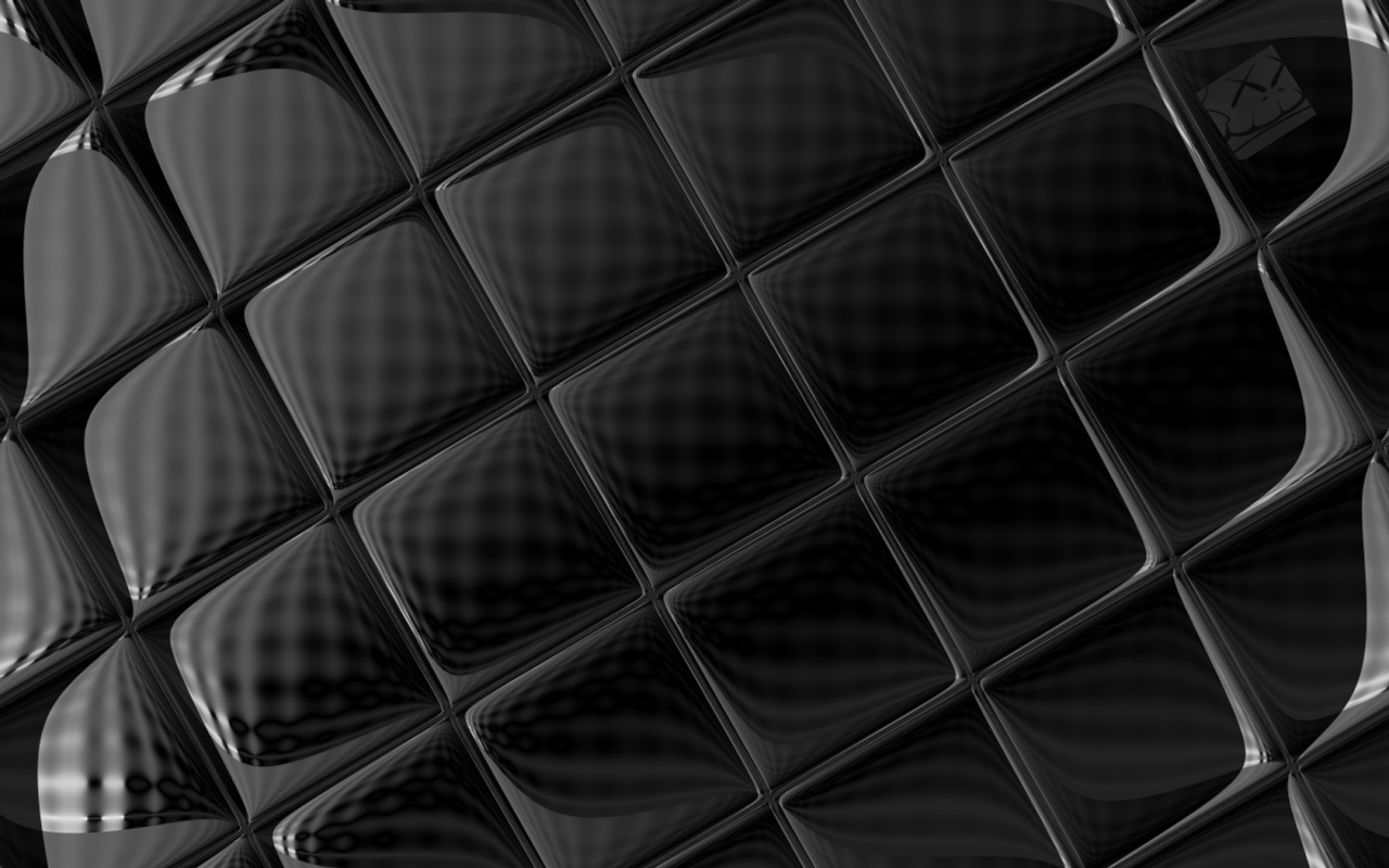 Description: A black and white photo of a building with a reflection of it's windows in the glass wall.