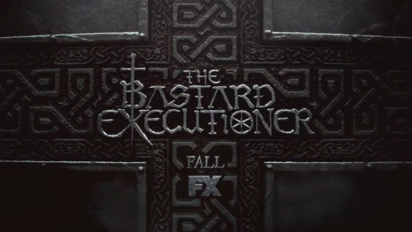 Description: A black and white photo of a cross with the words the bastard executive on it's side and a black background.