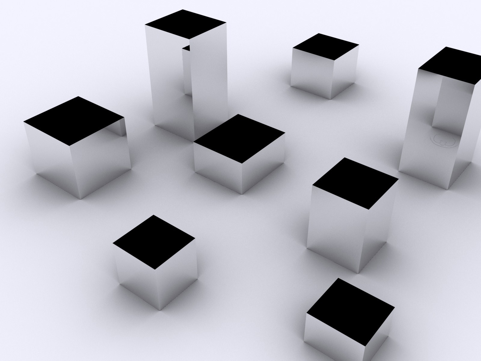 Description: A group of black and white cubes sitting on top of a white floor next to each other on a white surface.