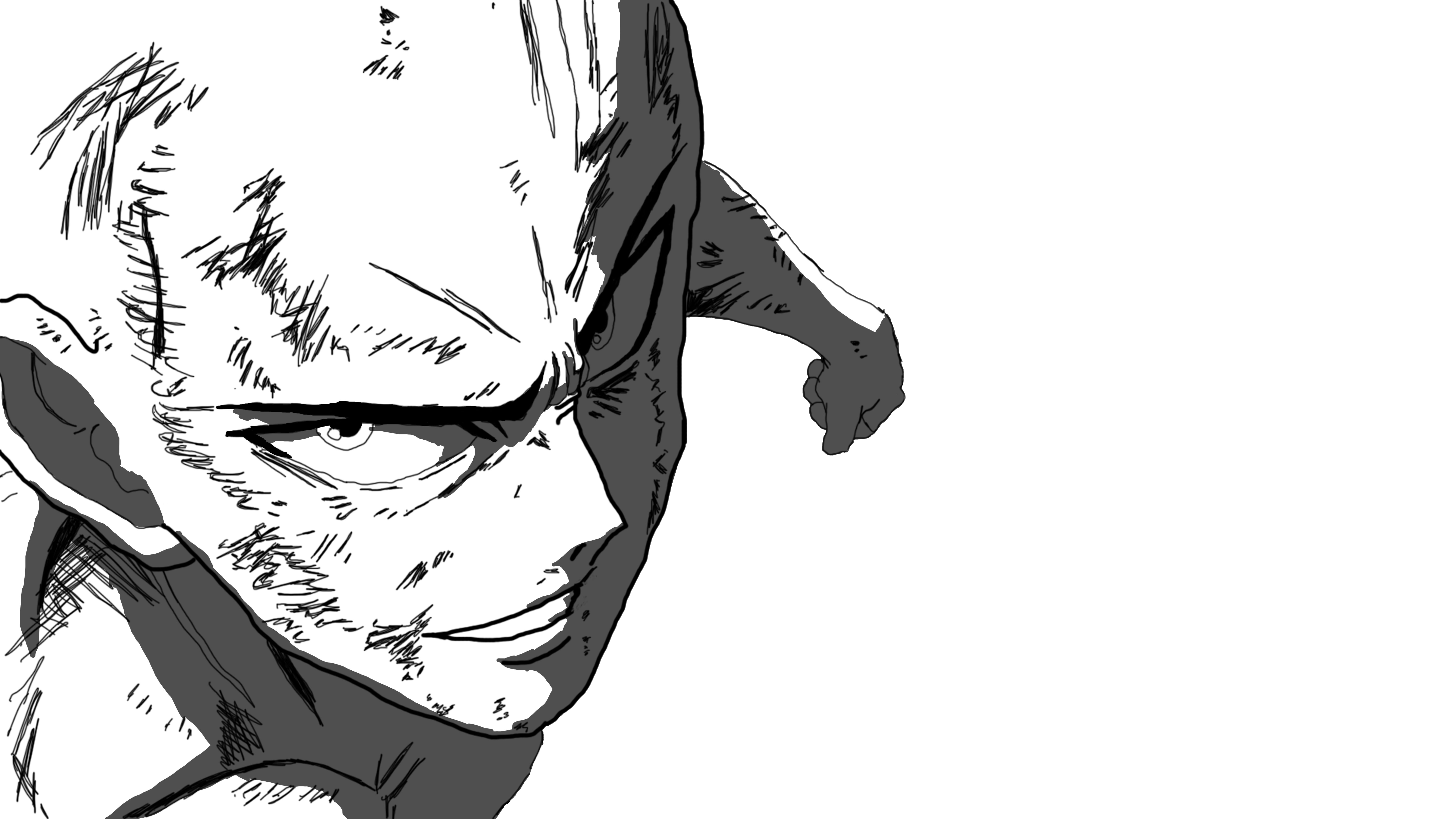 Description: A black and white drawing of a man with a beard and glasses on his face.