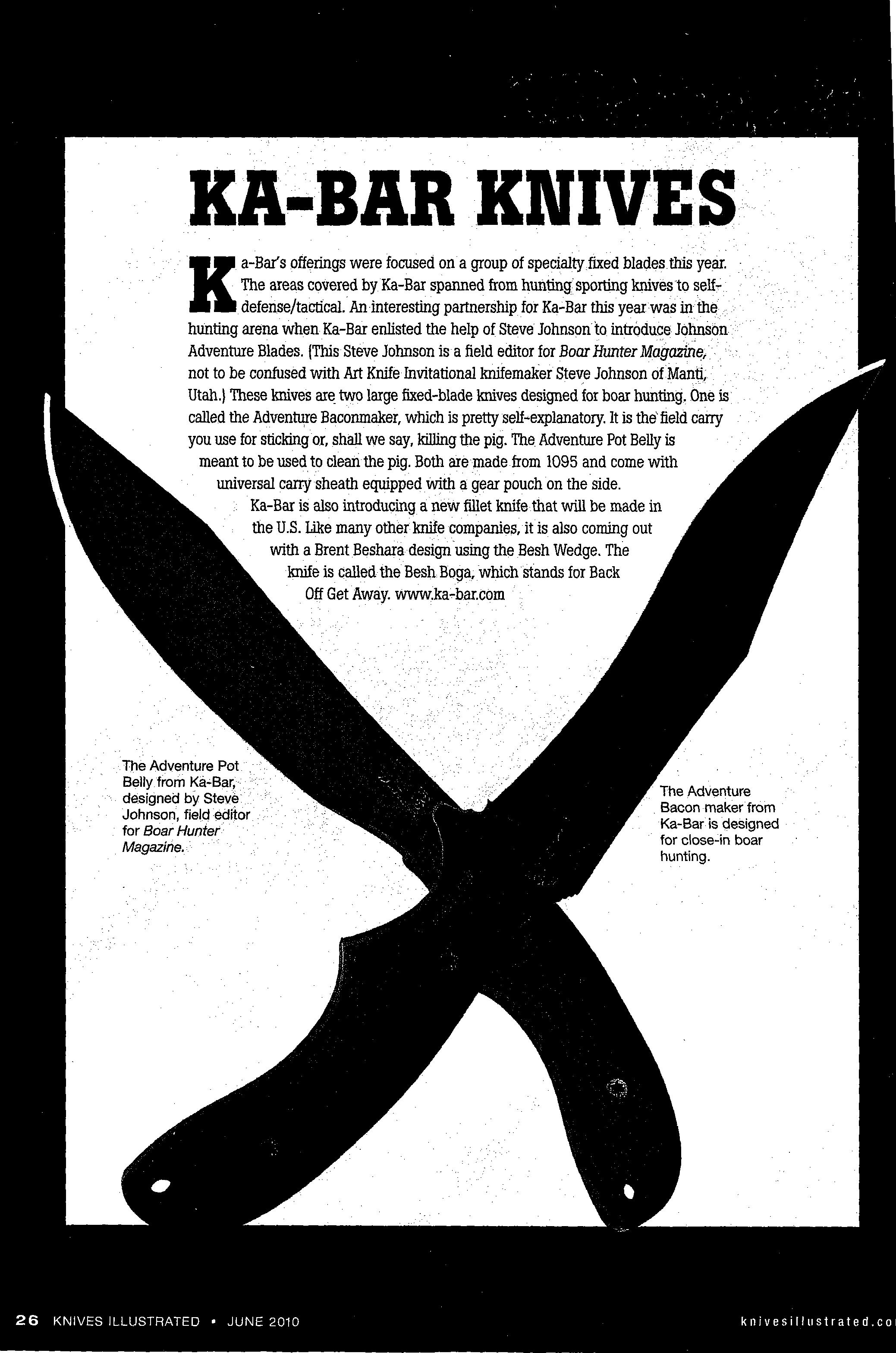 Description: A black and white advertisement with a knife and a knife blade on it's side and a description of the knife.