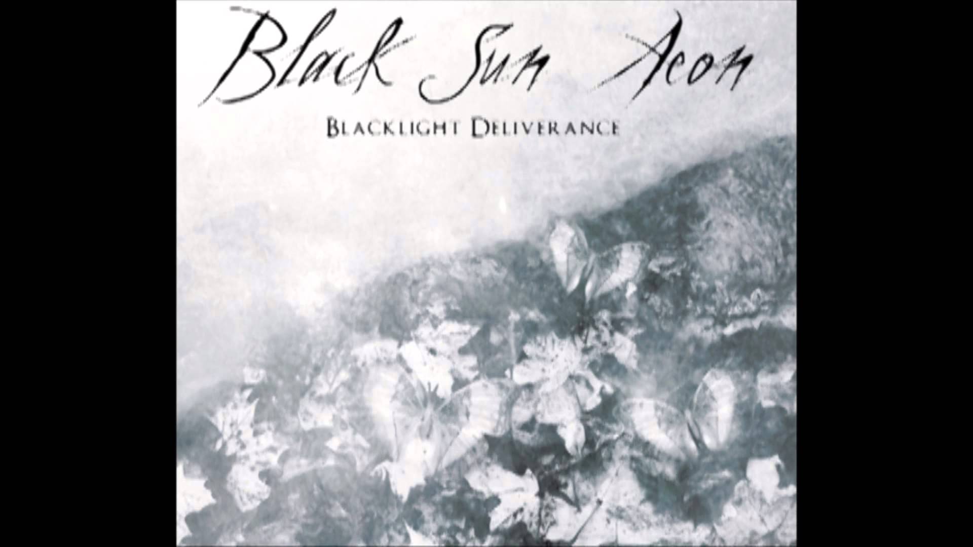 Description: A black and white photo of a mountain with a sky background and the words black sun above it in black and white.