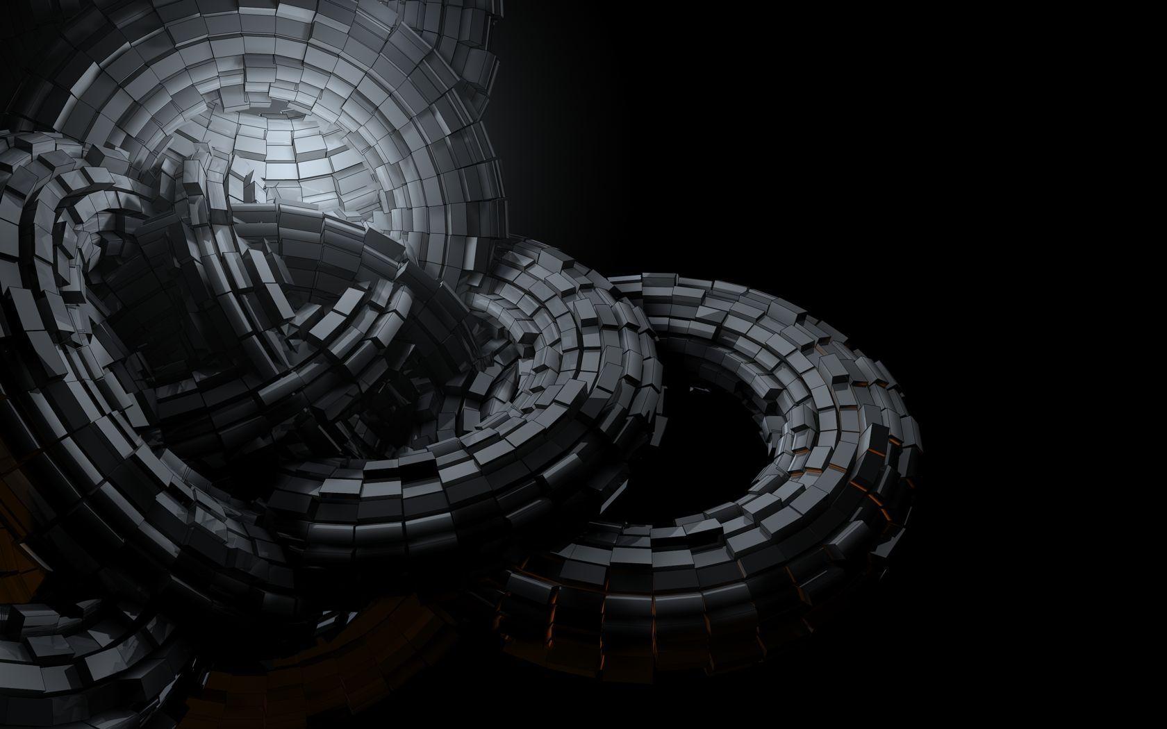 Description: A bunch of black and white objects in the dark room with a black background and a black background with a white circle.