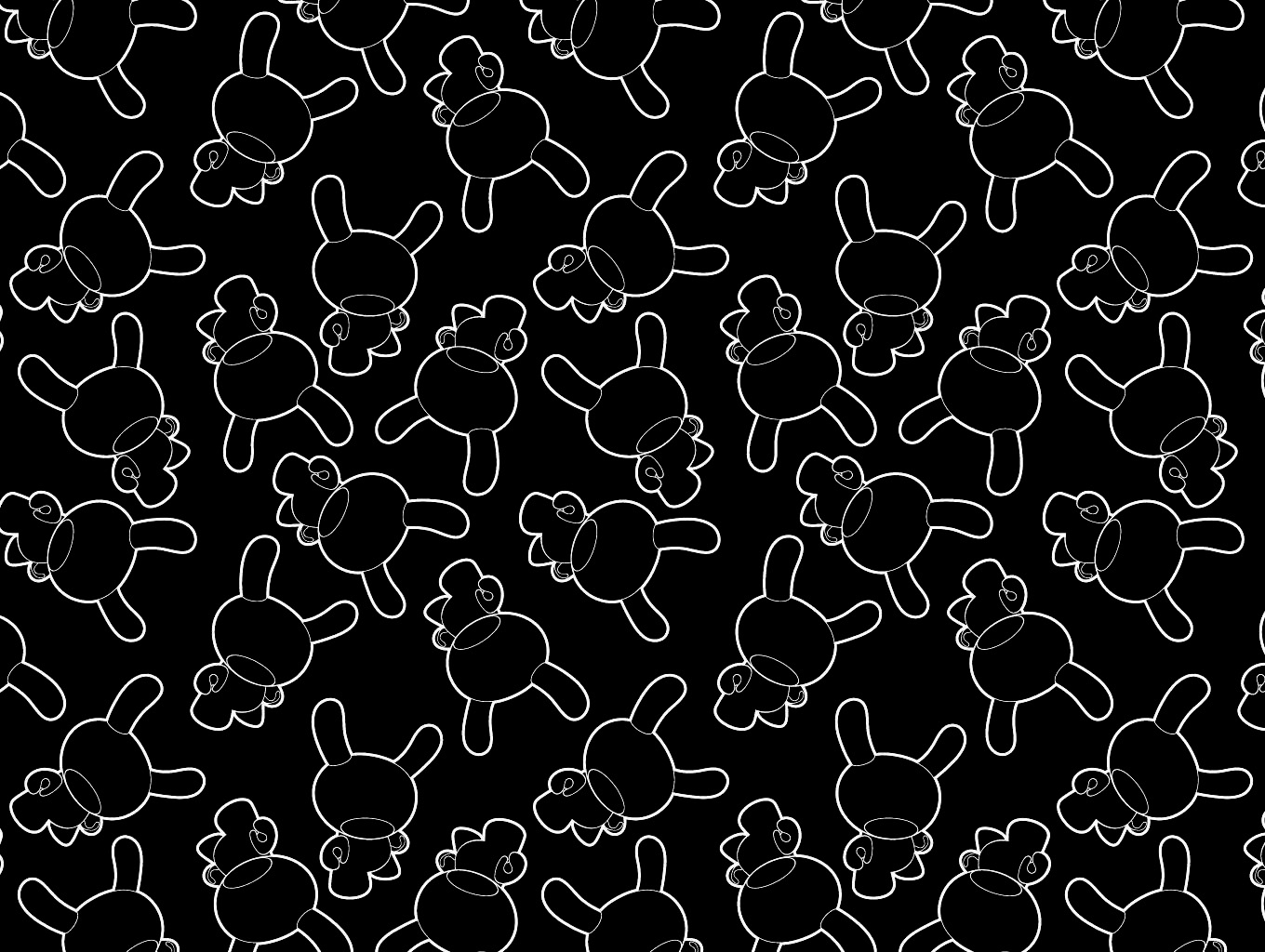 Description: A black and white pattern with a teddy bear on it's back ground and a black background with white outlines.