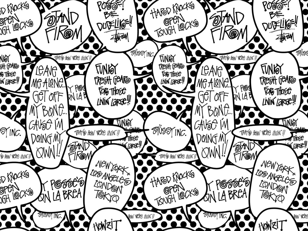 Description: A black and white pattern with many different words on it.
