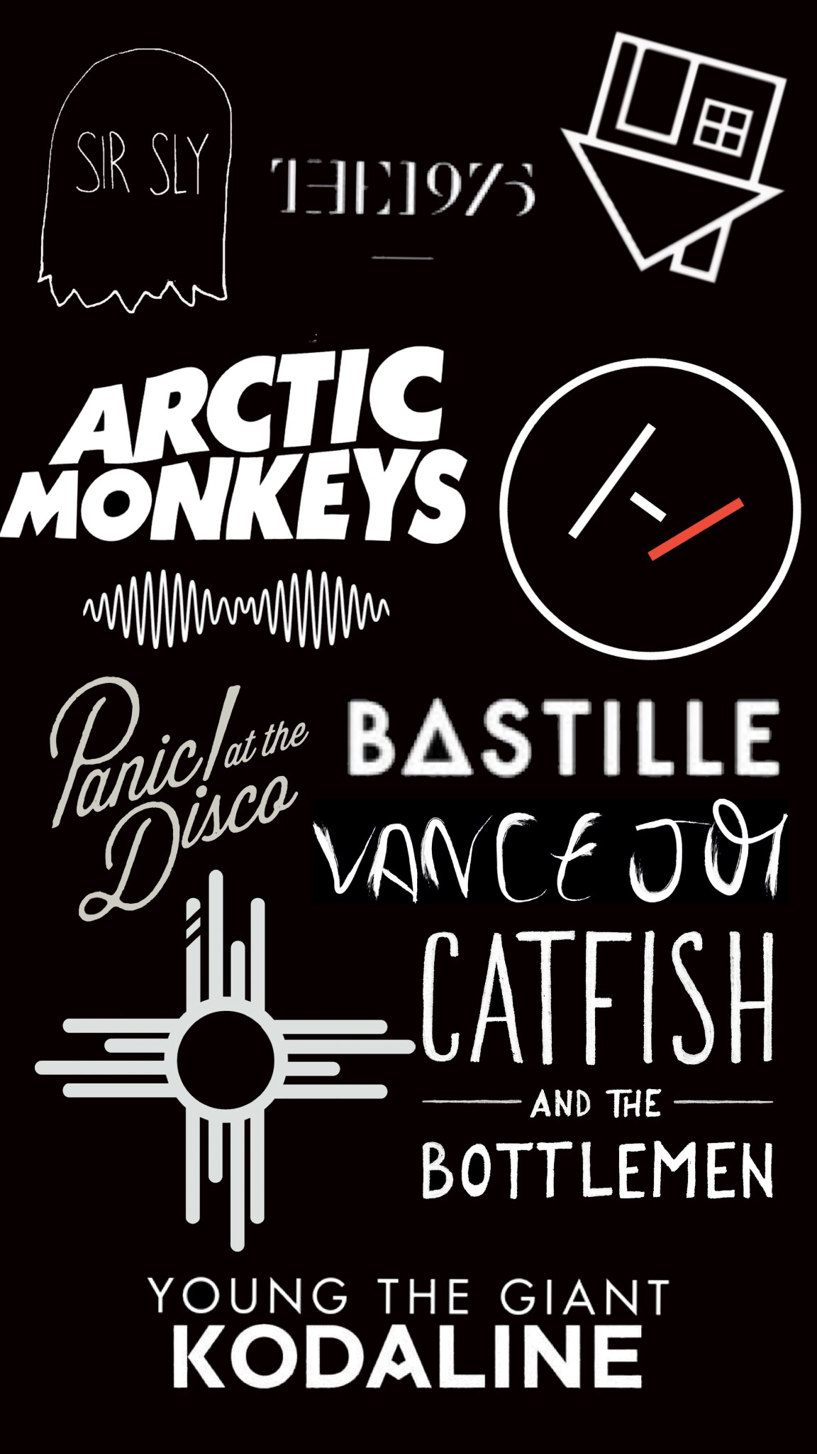 Description: A black and white poster with some words on it's side and a black background with a white outline.