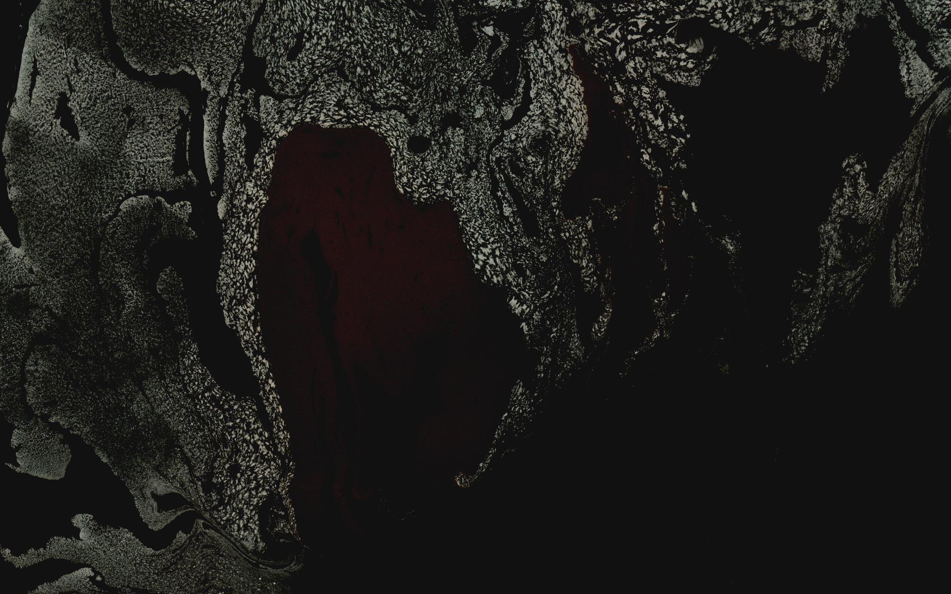 Description: A black and white photo of a red spot in the ground with a black background and a red spot in the ground.