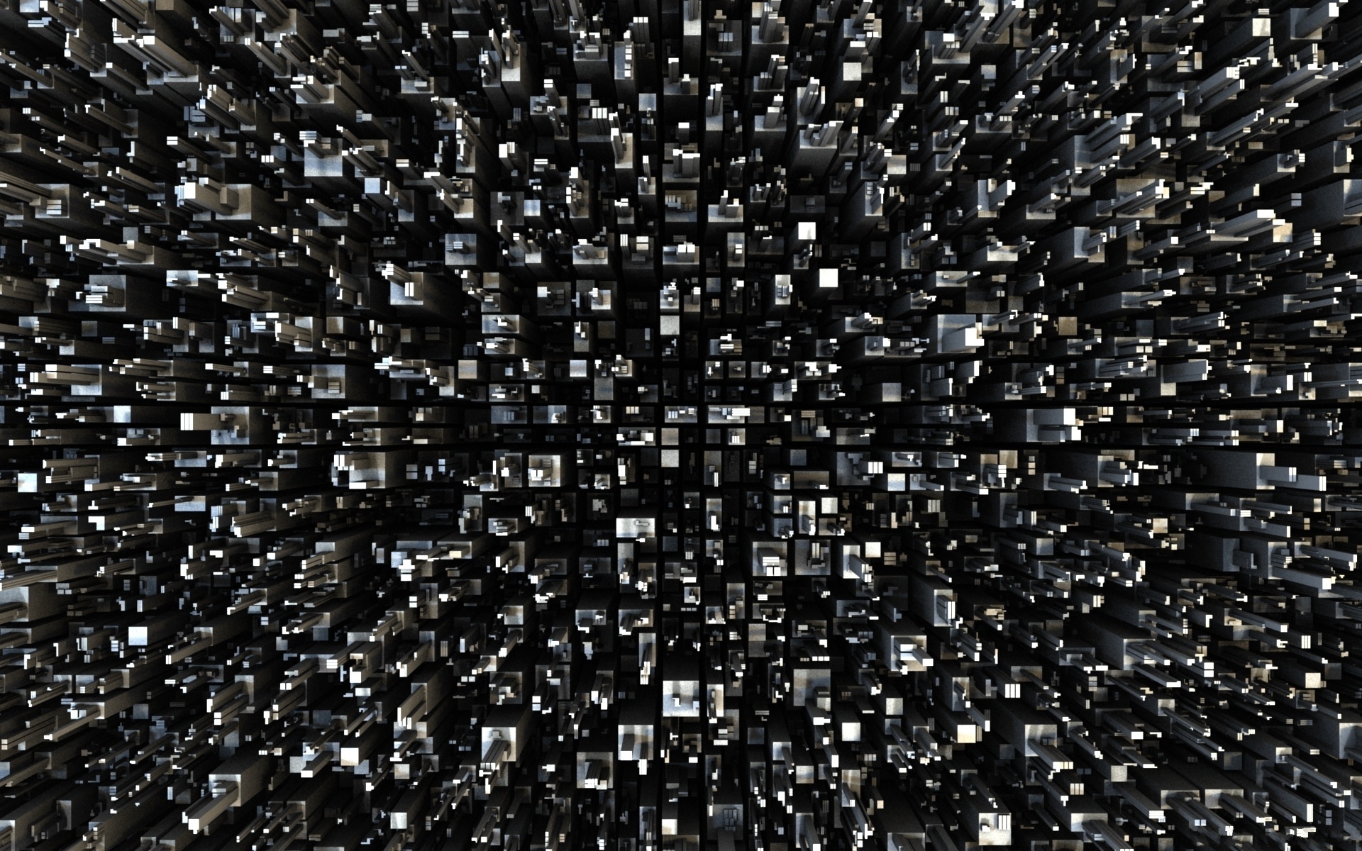 Description: A black and white photo of a large amount of squares in a square pattern with a black background and a white background.