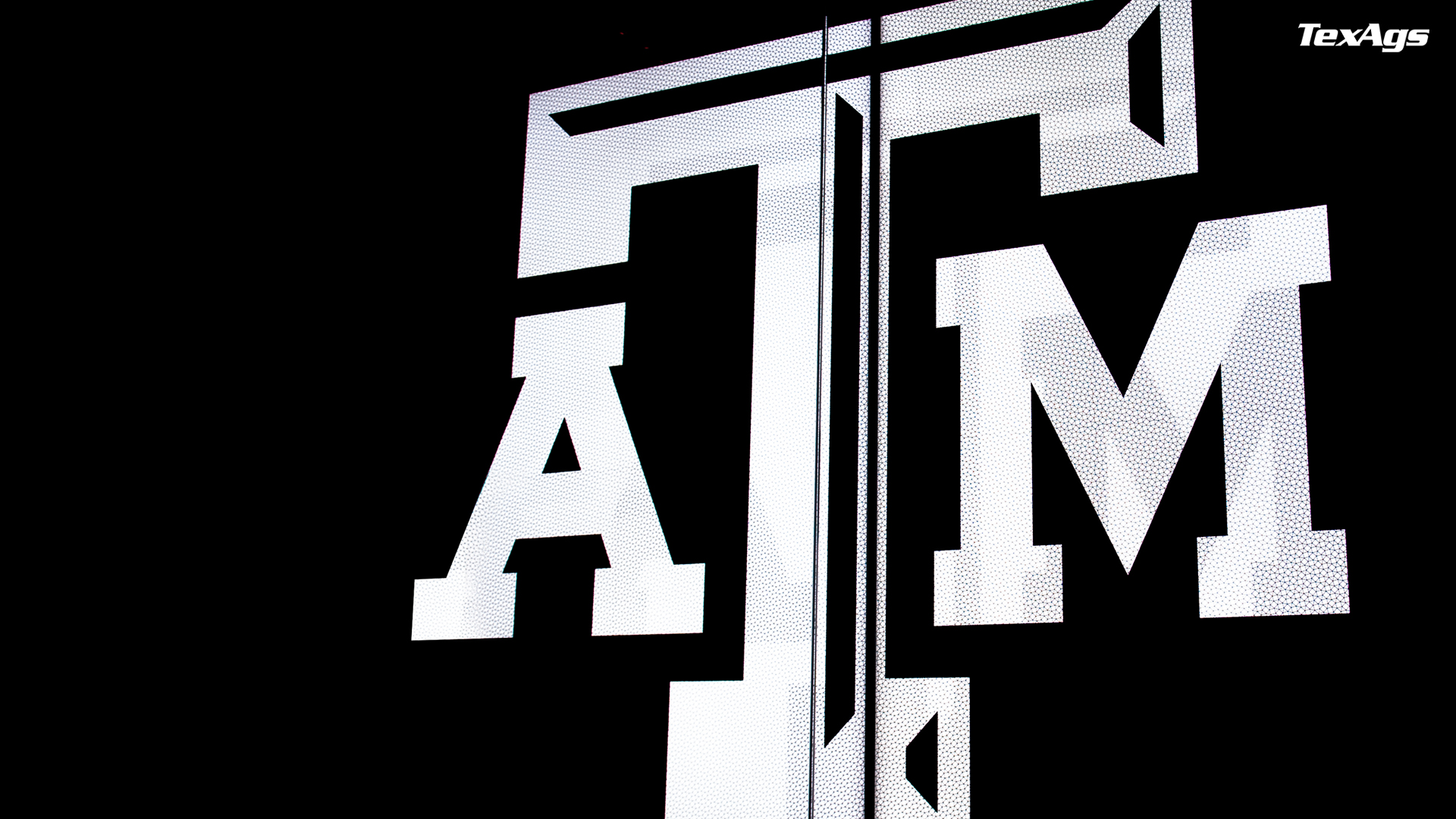 Description: A black and white photo of a tall building with a large logo on it's side that says tam.