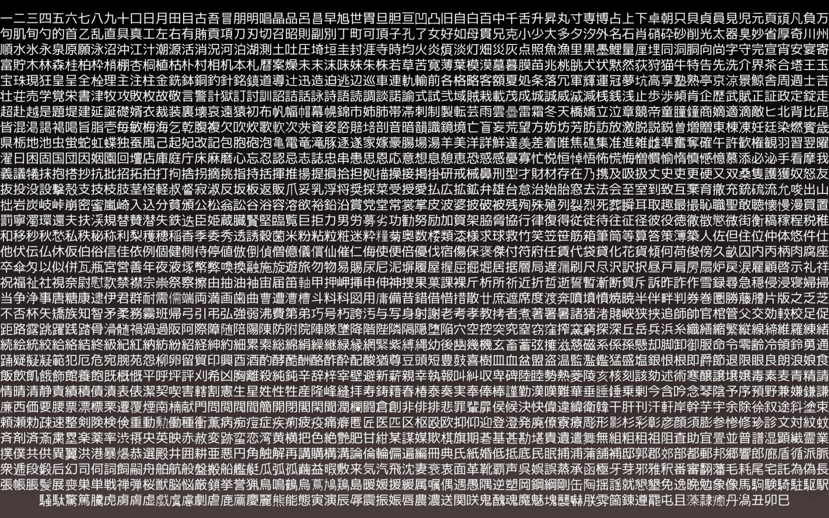 Description: A large number of words are displayed in a black and white photo with a black background and a black border.