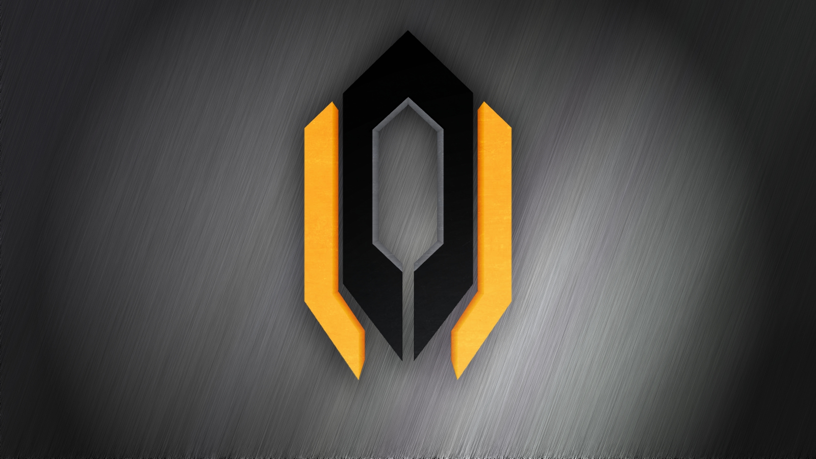 Description: A black and yellow logo with a yellow arrow on it's side.