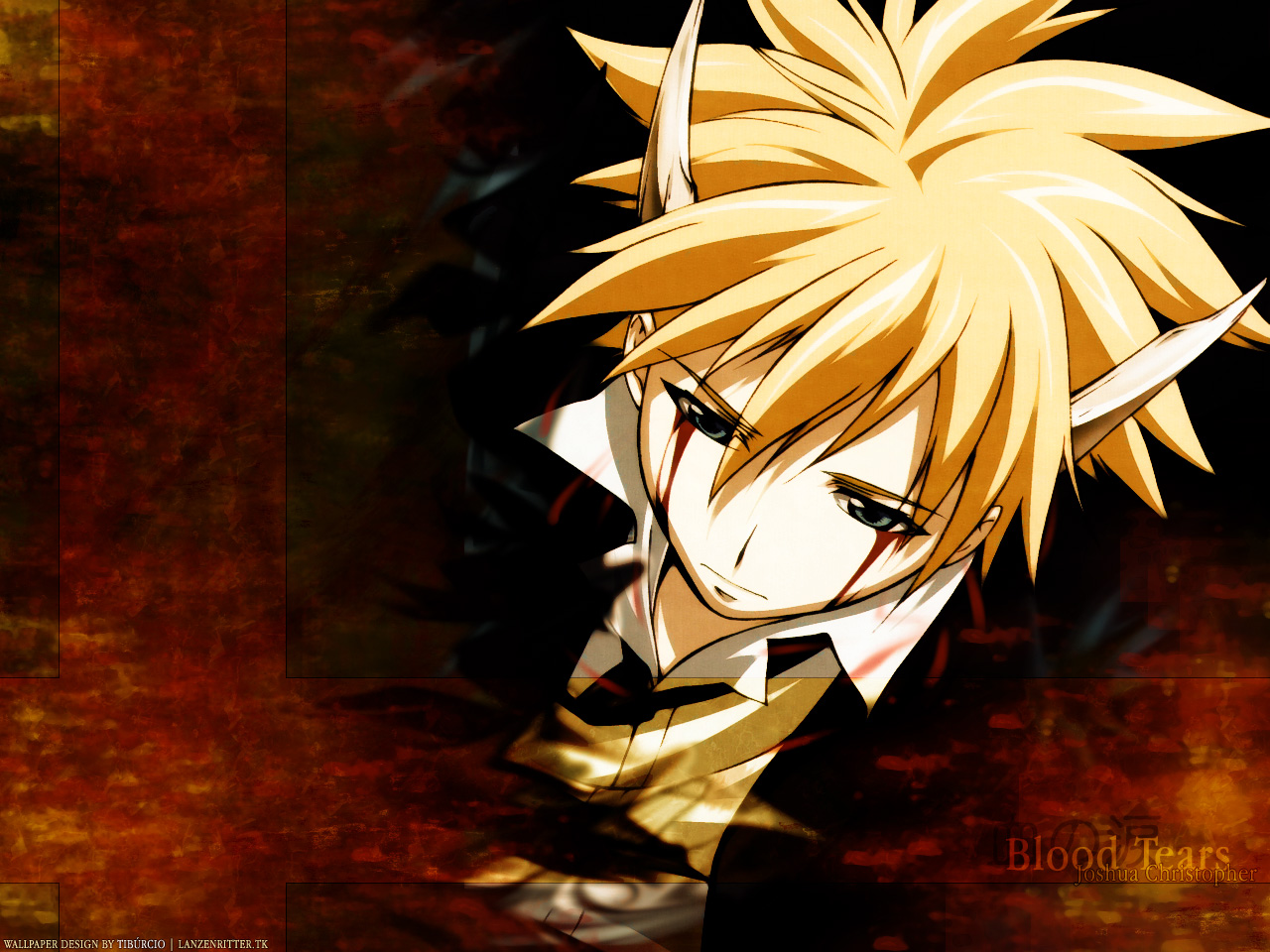 Description: A anime character with blonde hair and a black shirt and tie on.